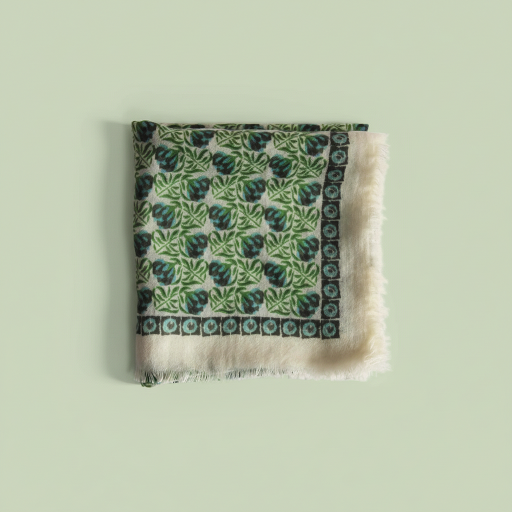 LES BELLES VAGABODES. Vert Green Poem Wool Square