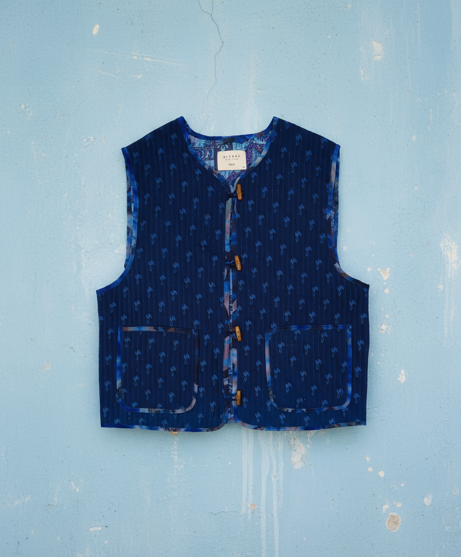 Cille Vest features a statement vest made in organic cotton velvet. The vest is short, has wide shoulders and two pockets at body front. It is lightly padded with quilt stitching and comes with a detachable belt for a more feminine fit.