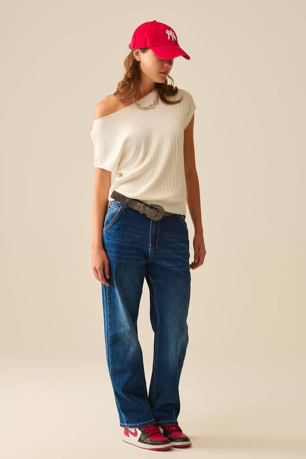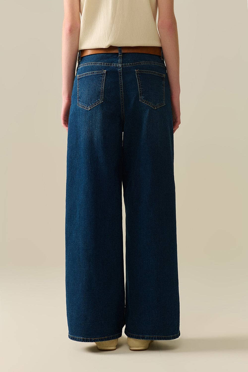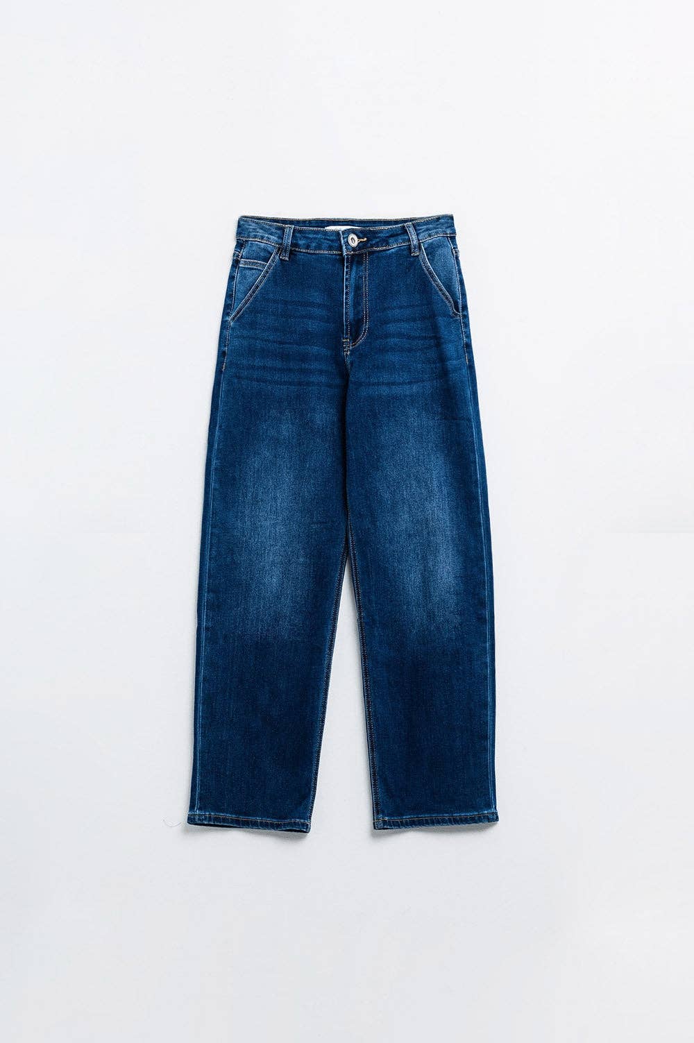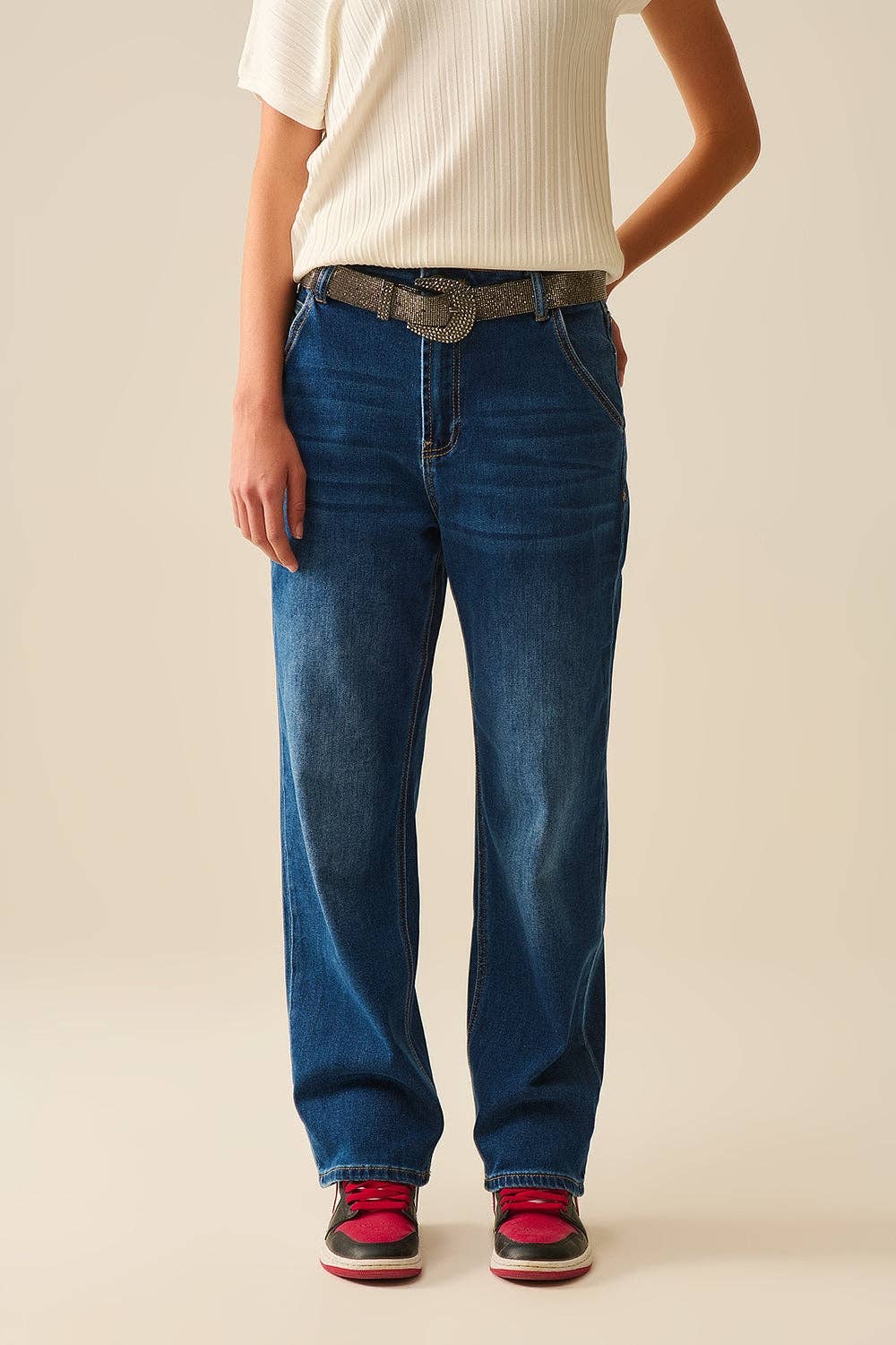 Straight Fit .Jeans With Side Pockets in Mid Blue