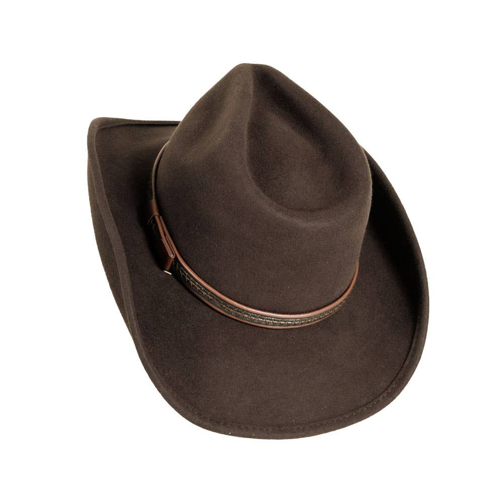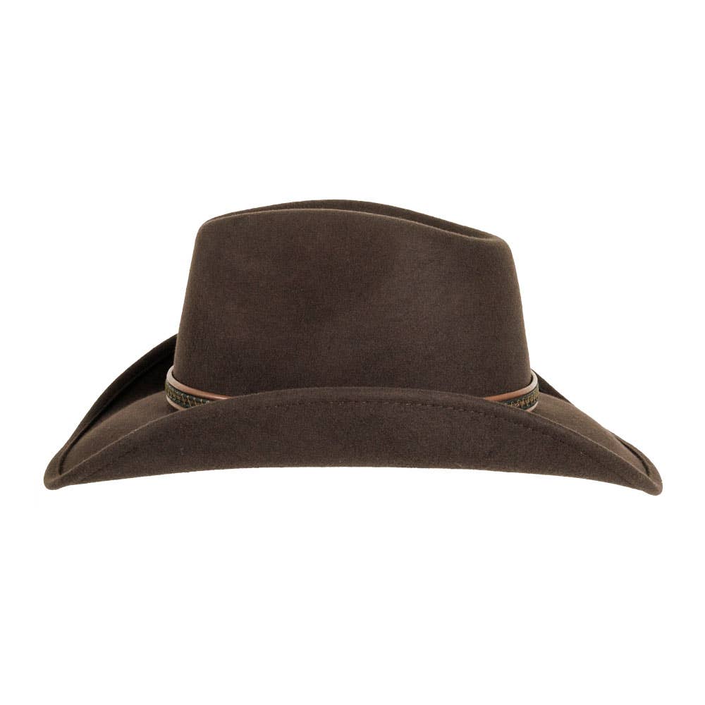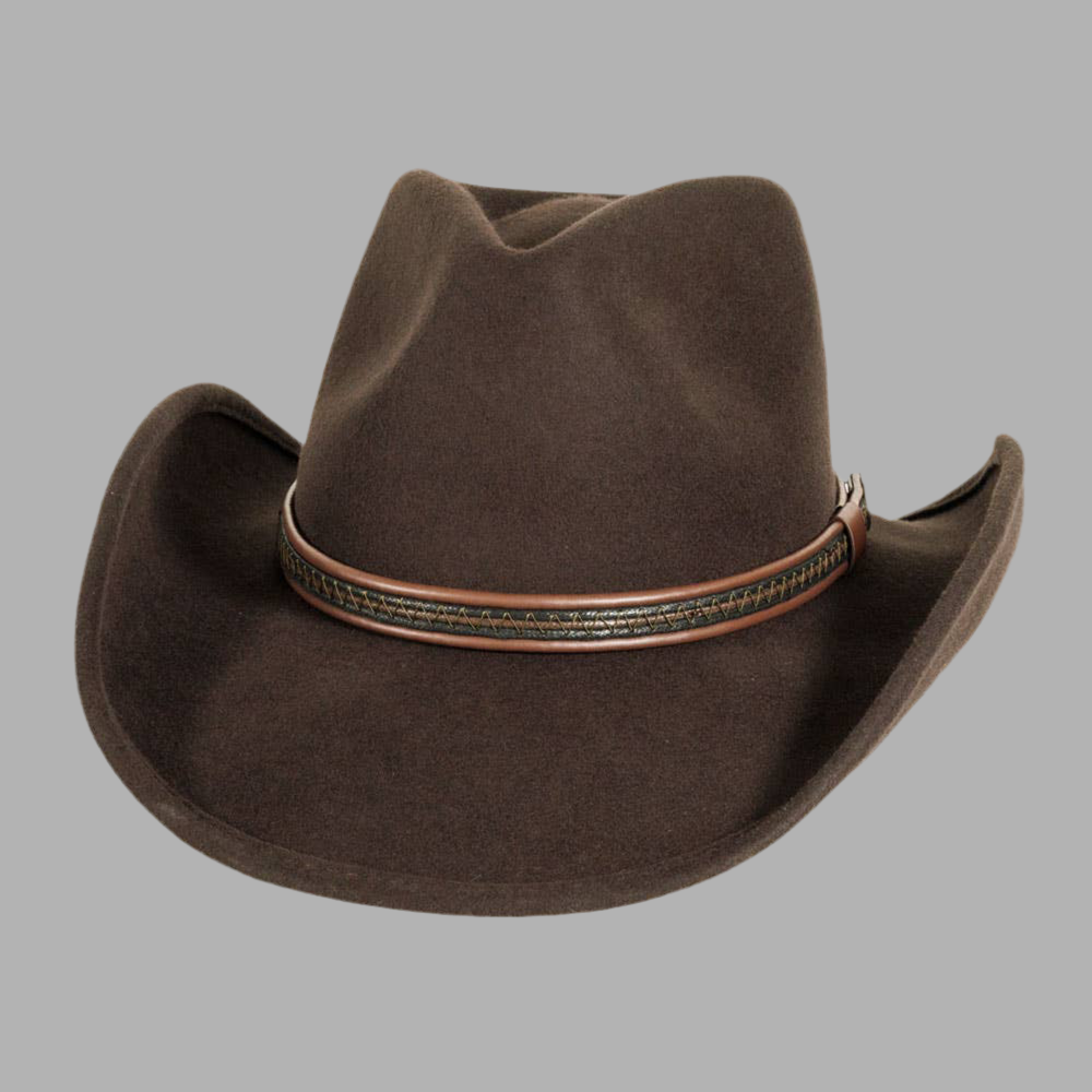 Med en kant på 7,6 cm (3") og en kronhøyde på 10,8 cm (4 1/4") har hatten en klassisk Pinch Front-form som balanserer tidløs eleganse med moderne flair. Det justerbare velcro-svettebåndet sørger for en komfortabel og tilpasset passform, uansett hodeomkrets. Hatten er importert og utstråler kvalitet i både design og materialer.