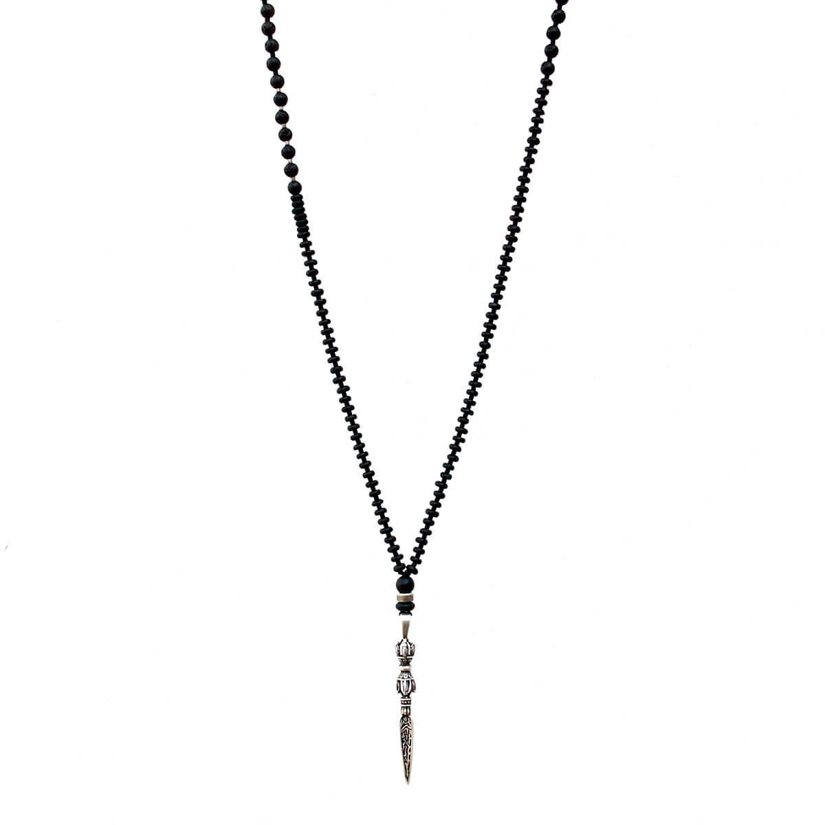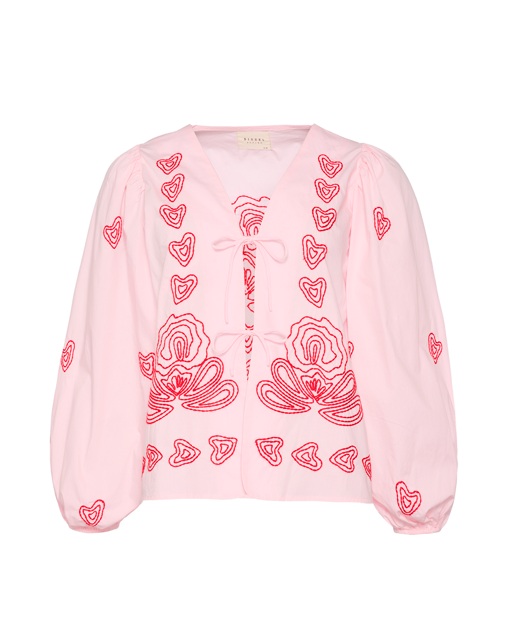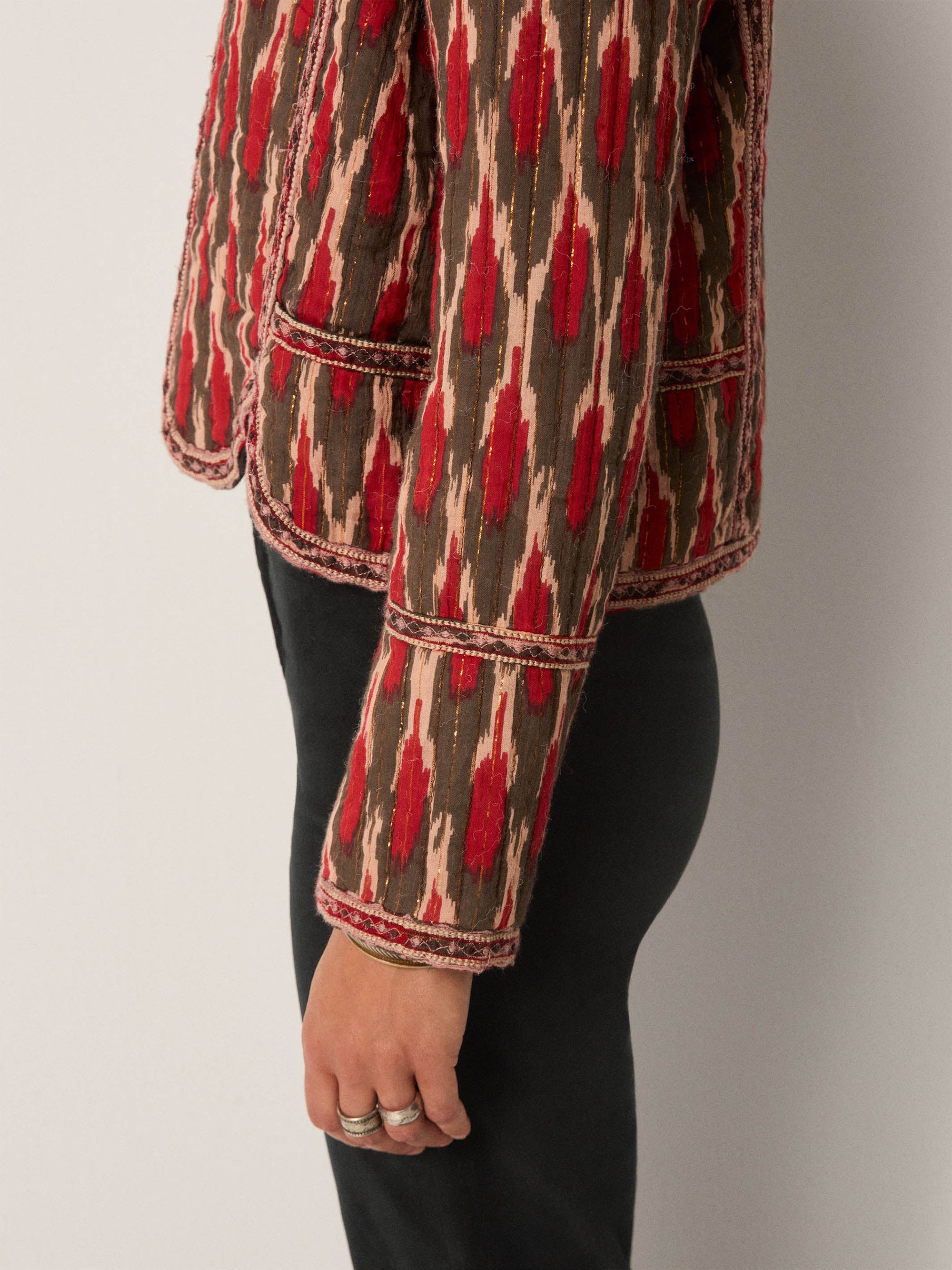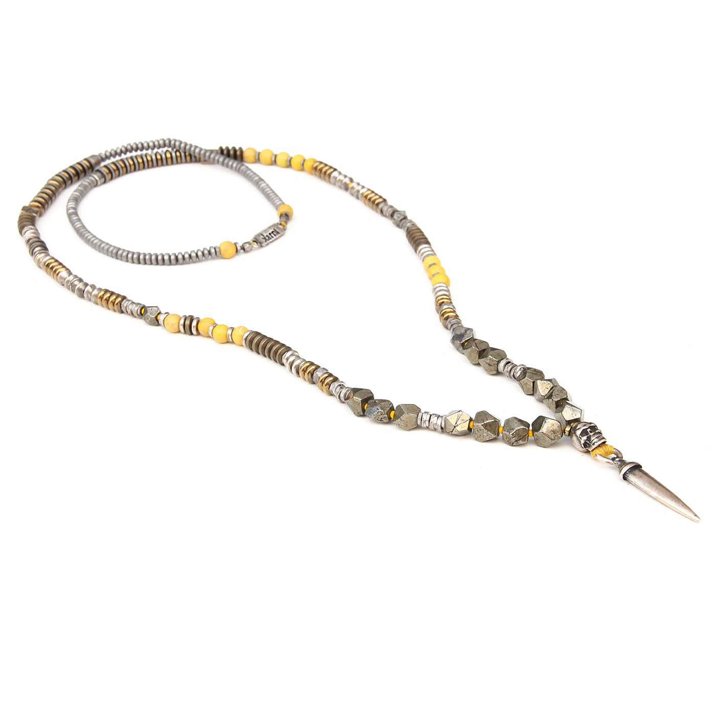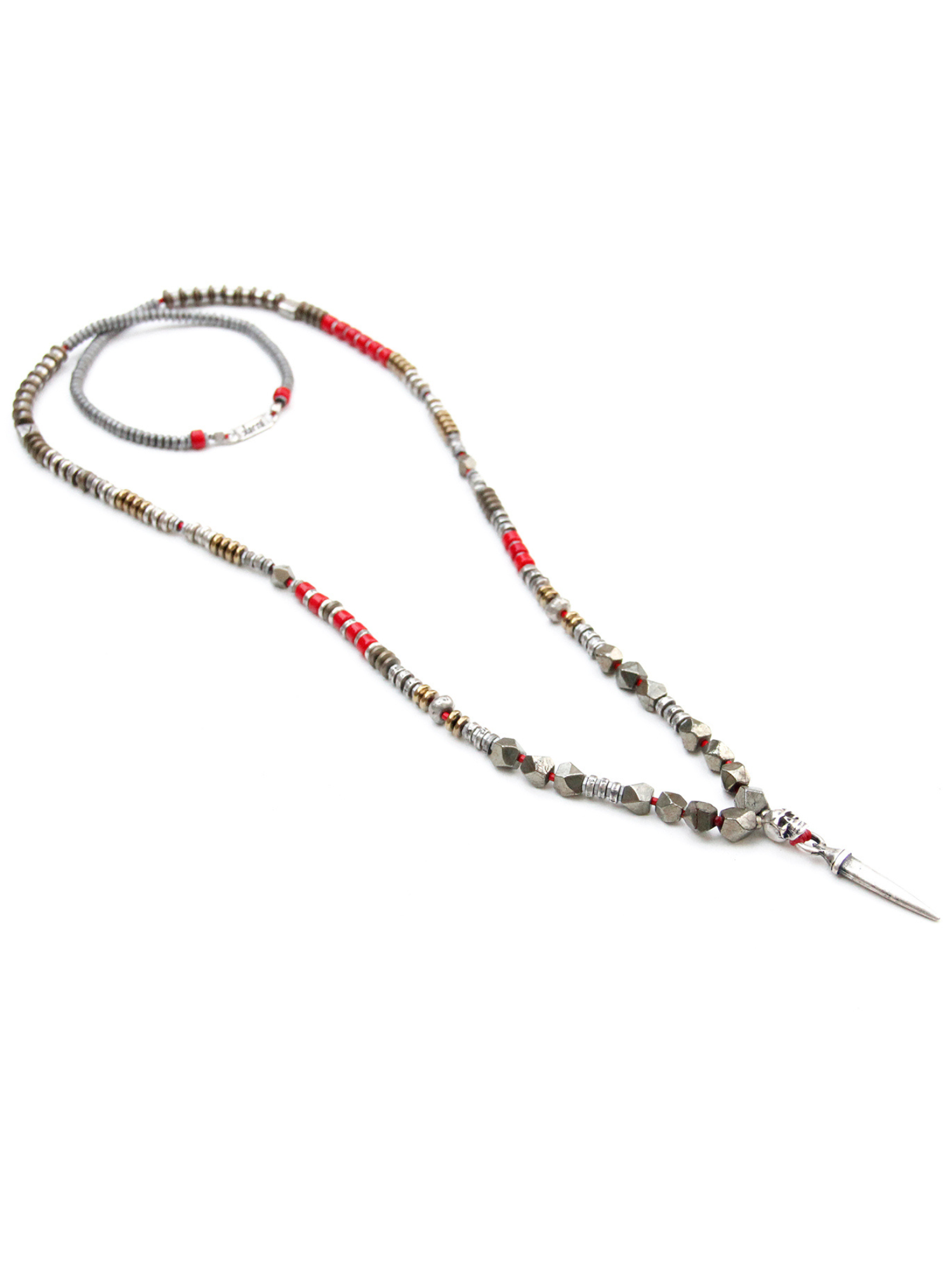 - Trim: Striebånd med tynt tau og treperler, bundet på siden