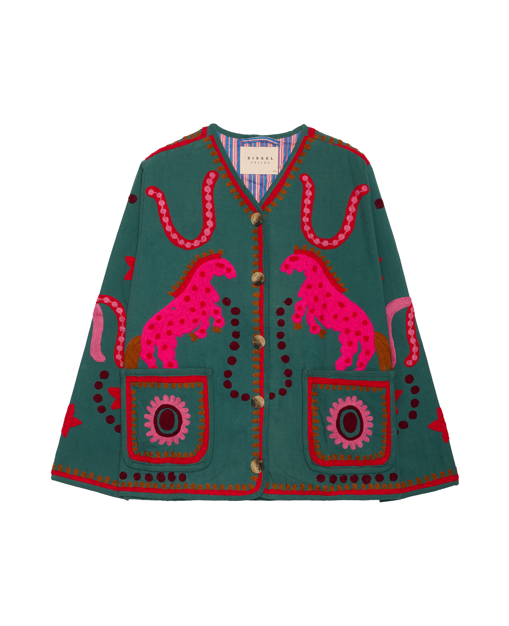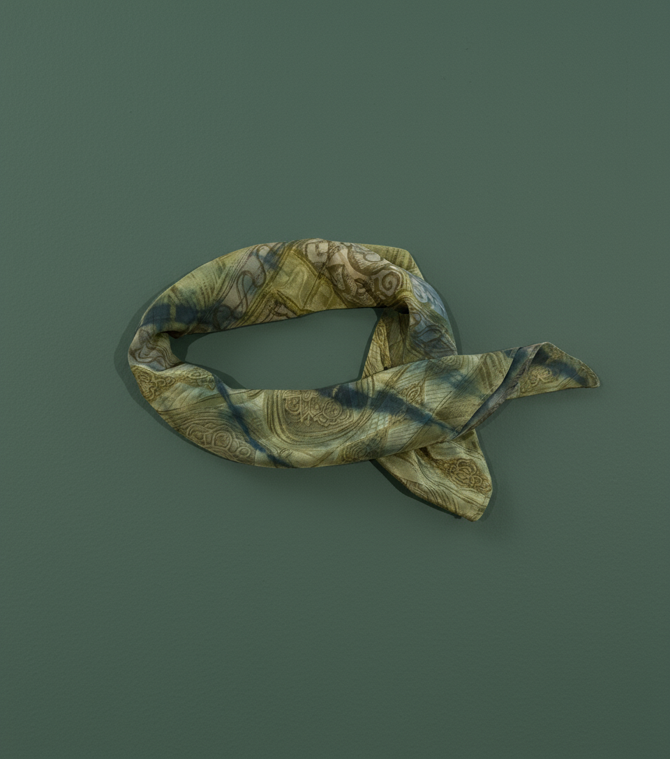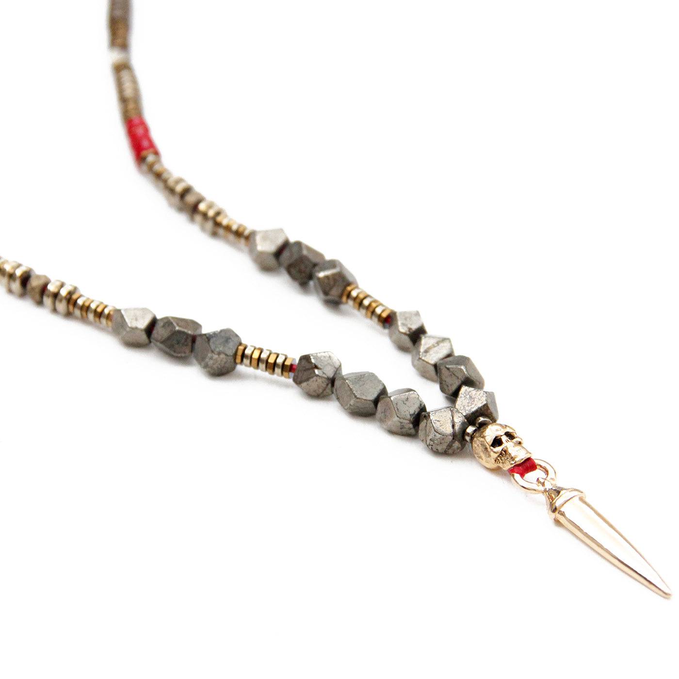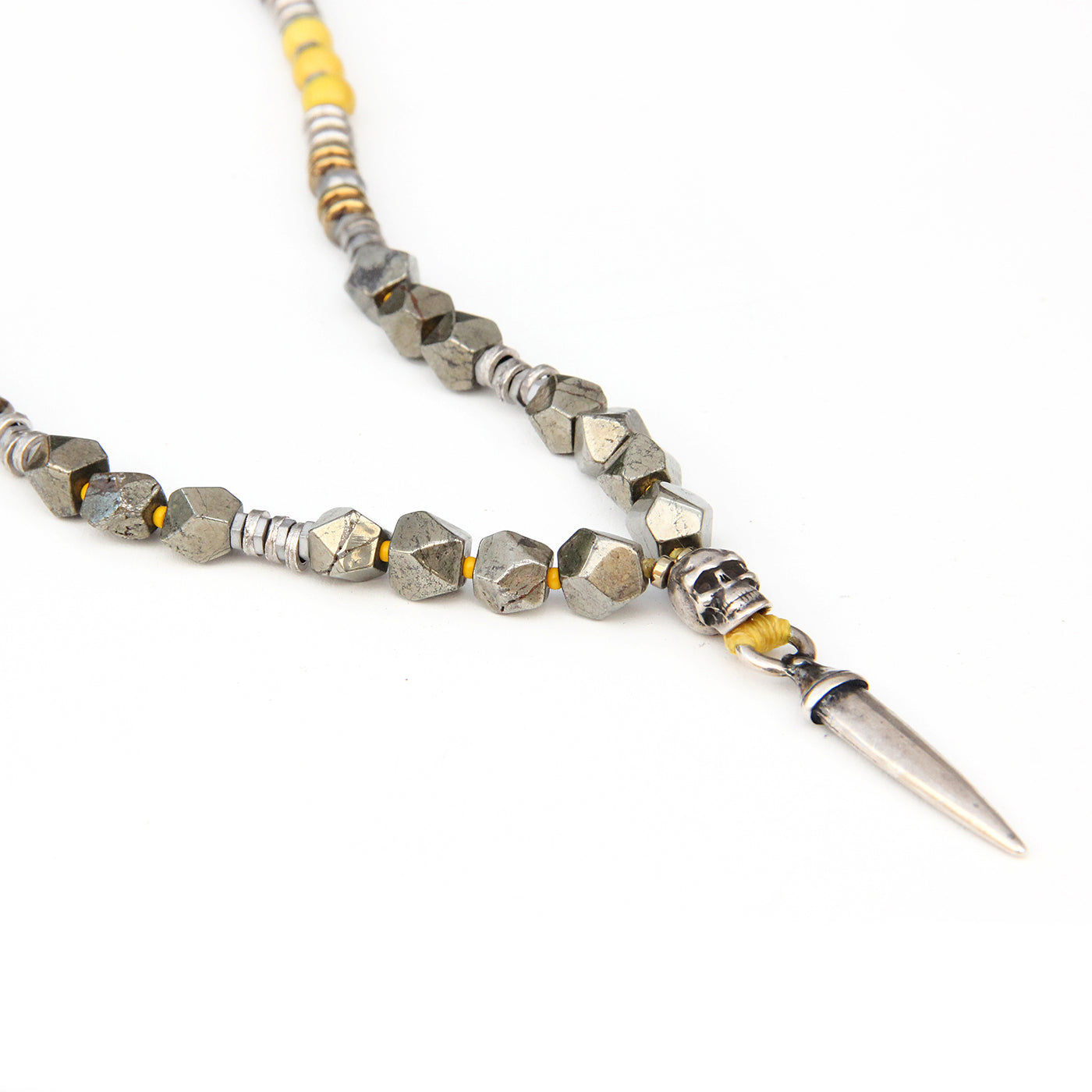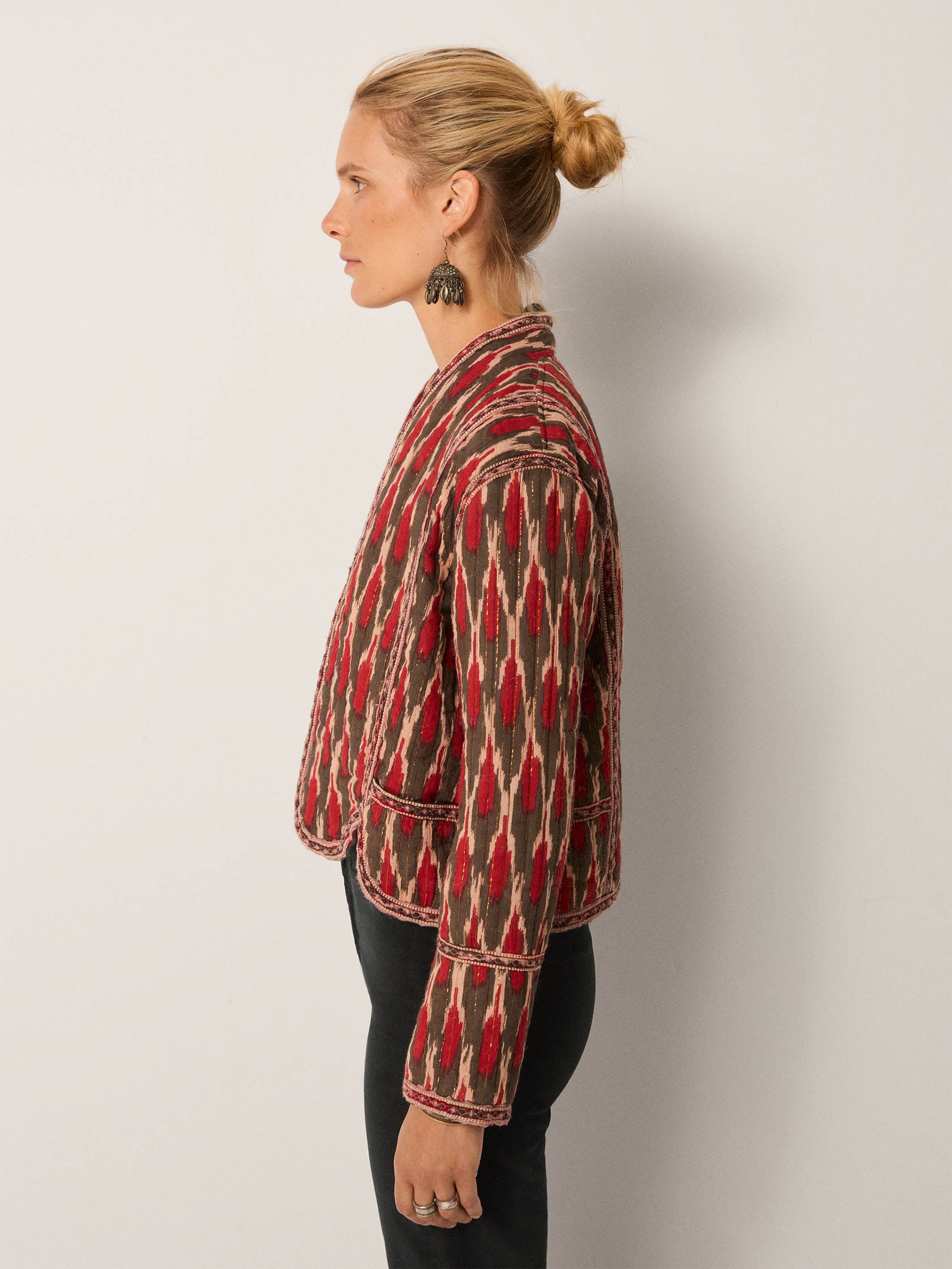 - Trim: Striebånd med tynt tau og treperler, bundet på siden