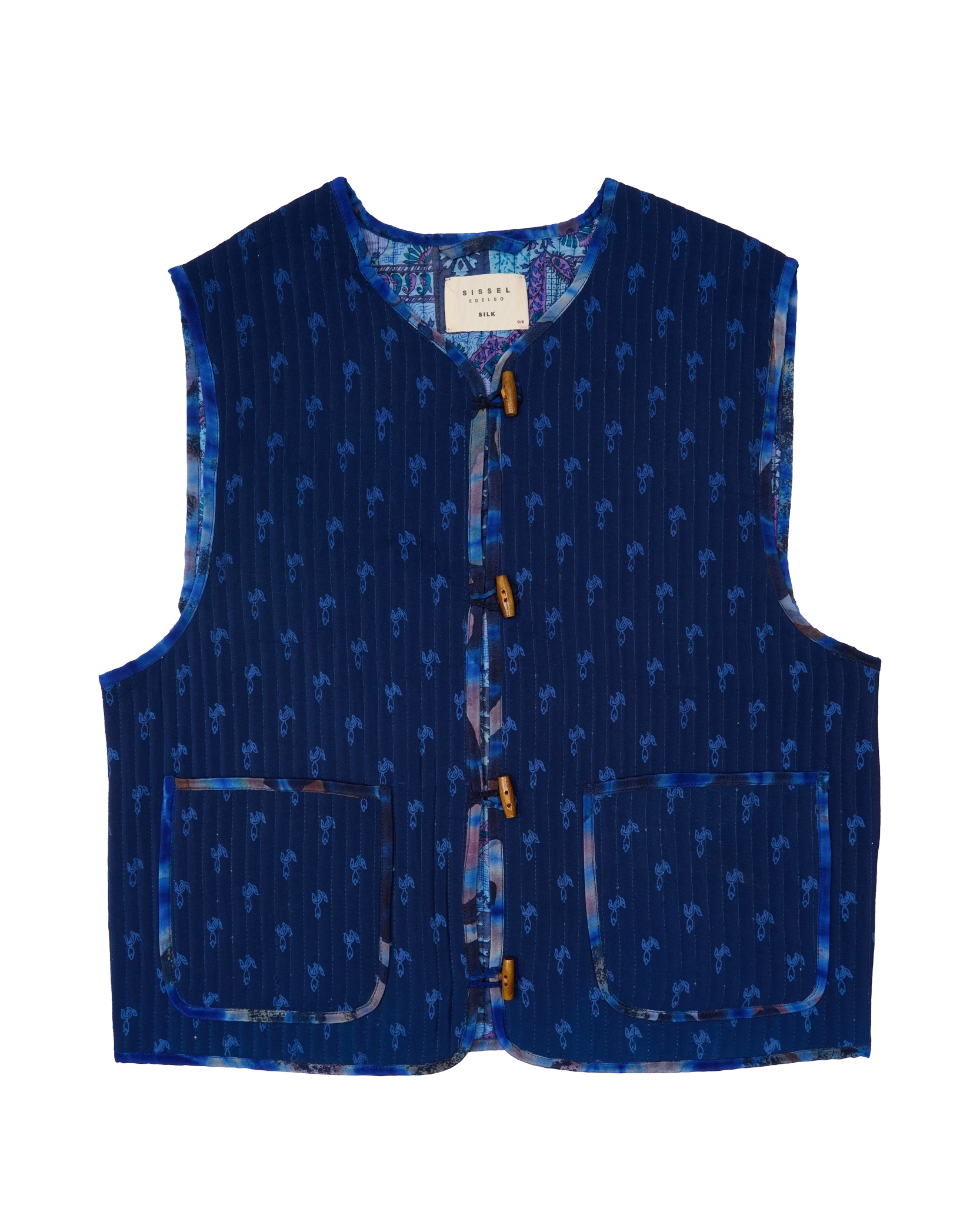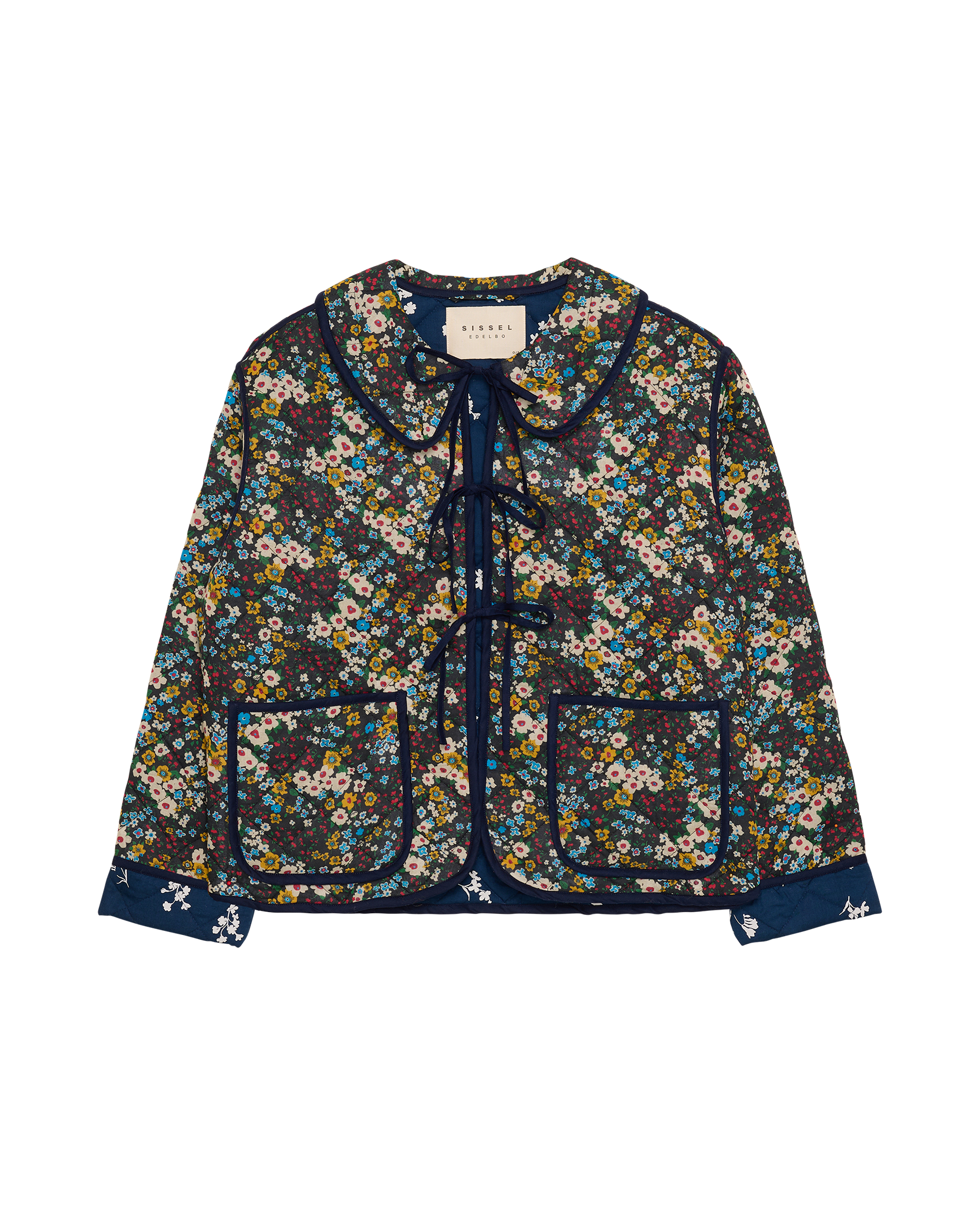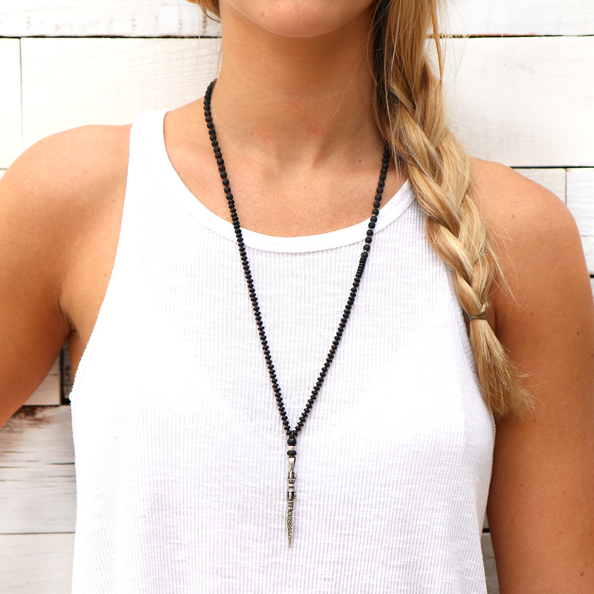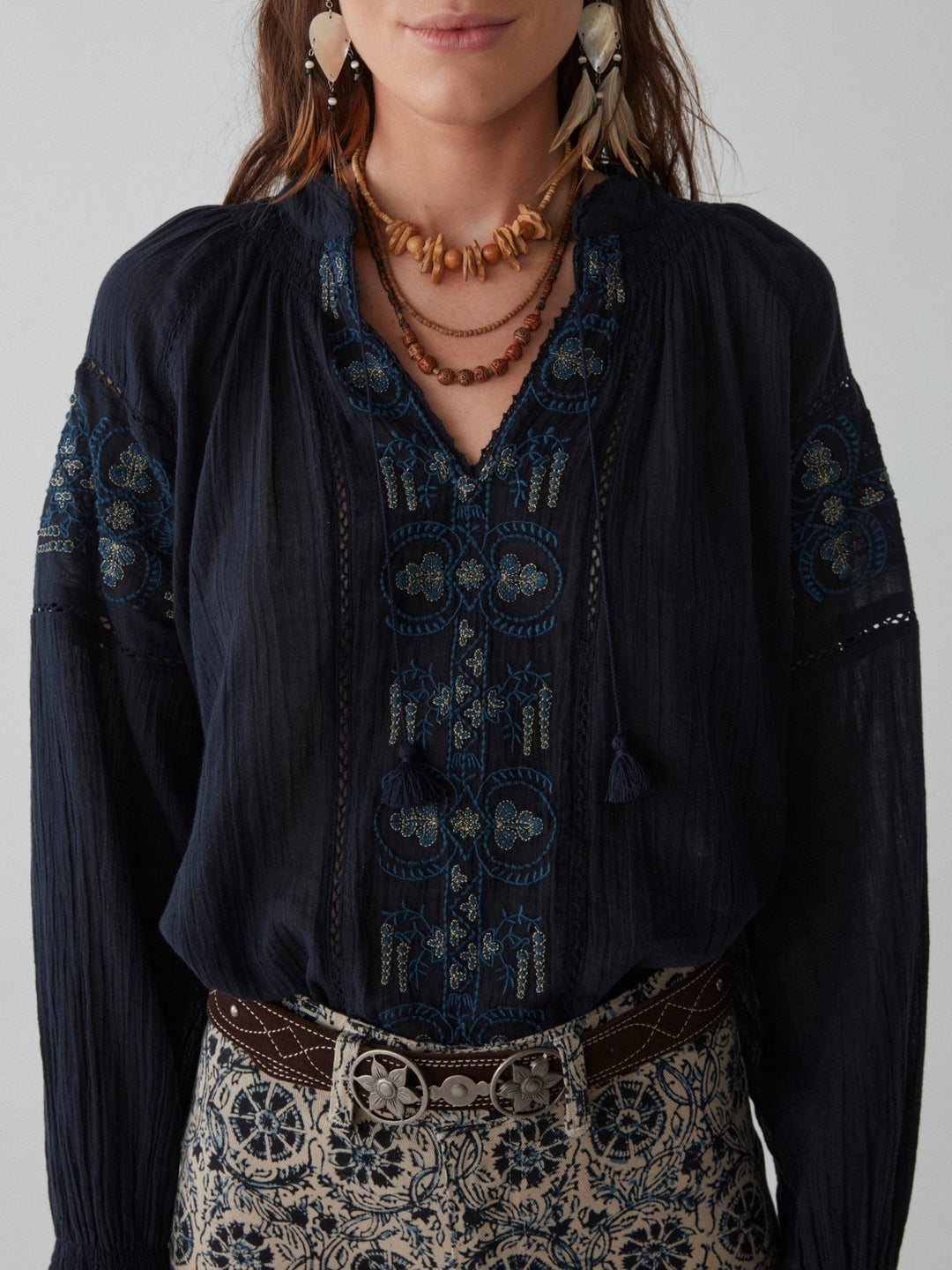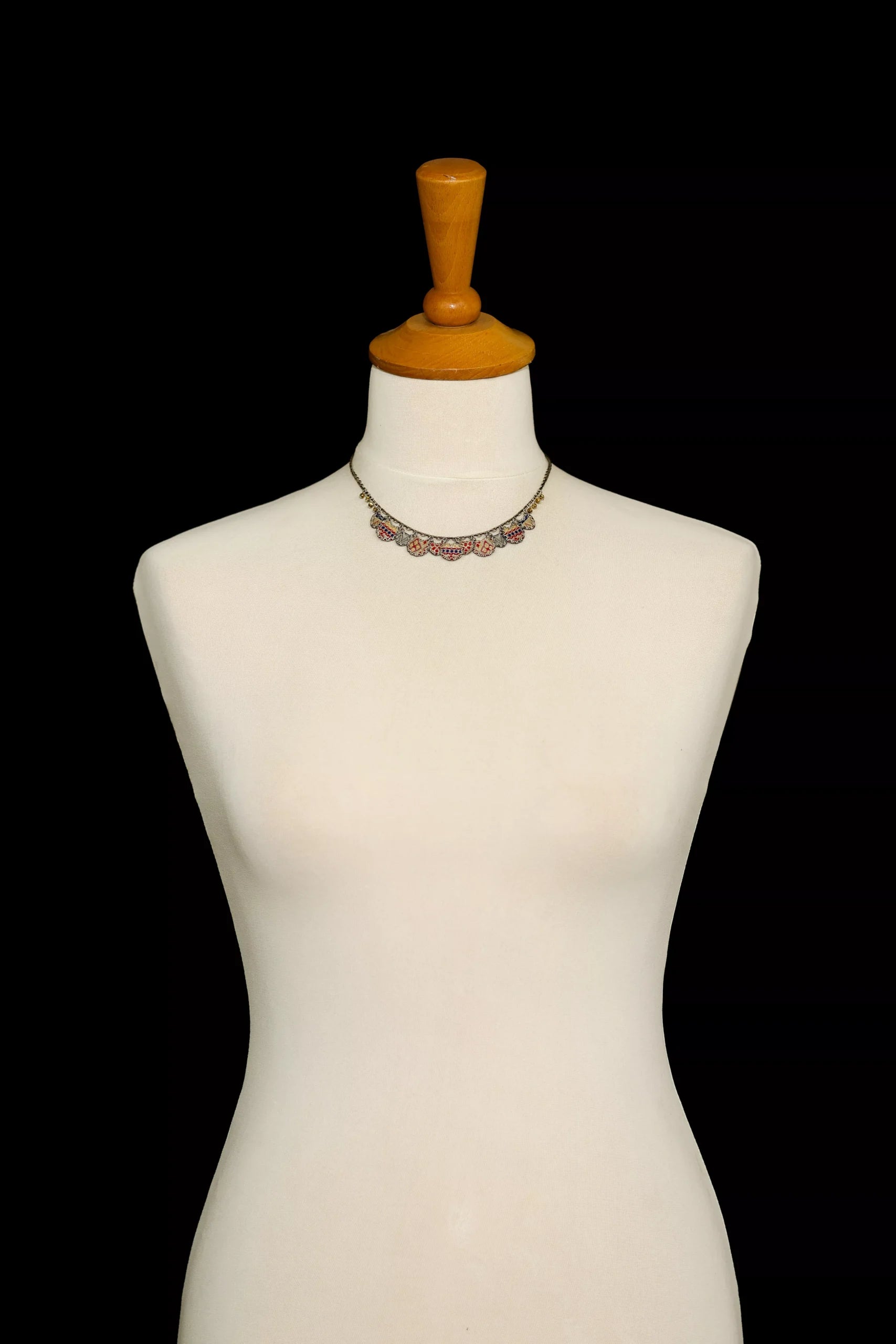 - Trim: Striebånd med tynt tau og treperler, bundet på siden