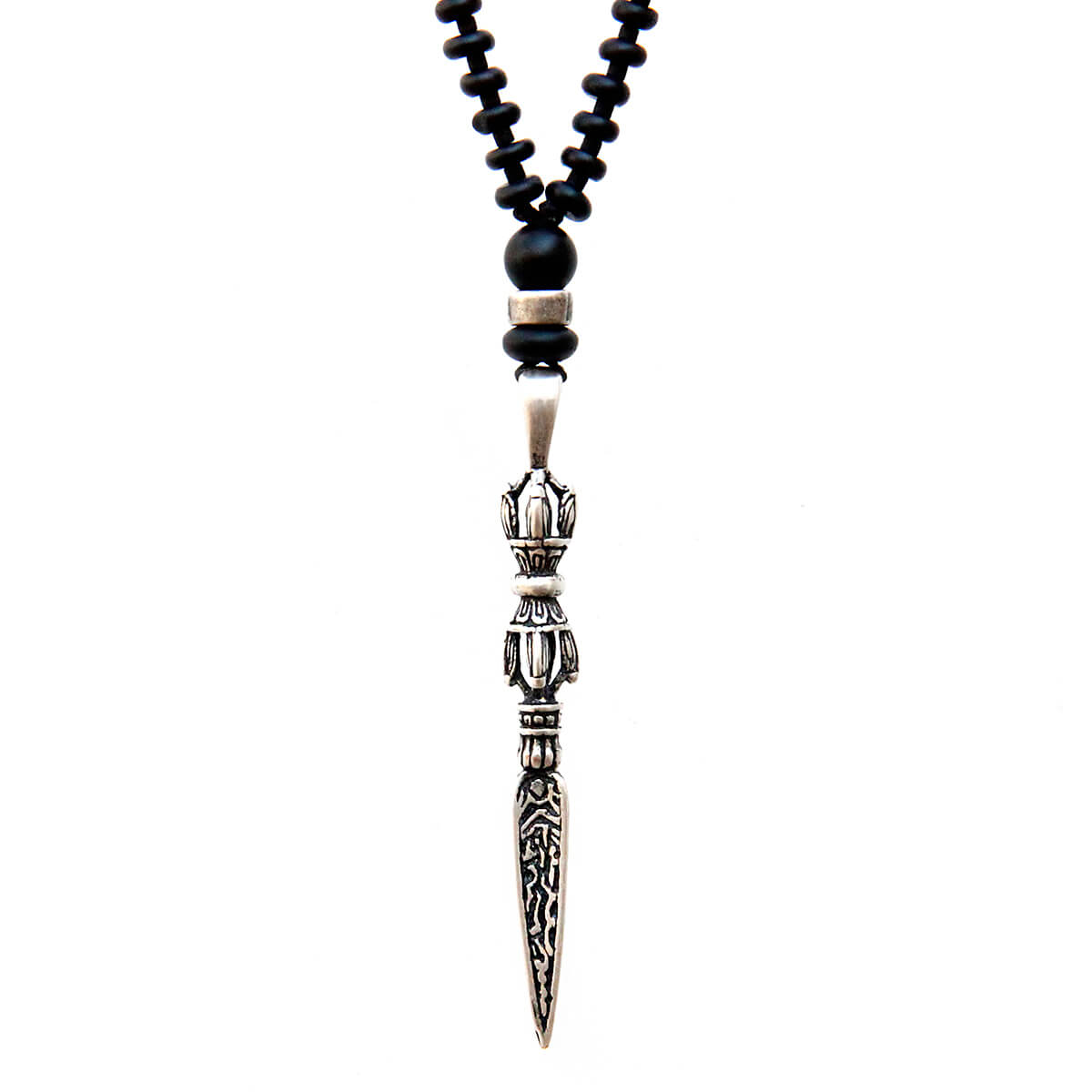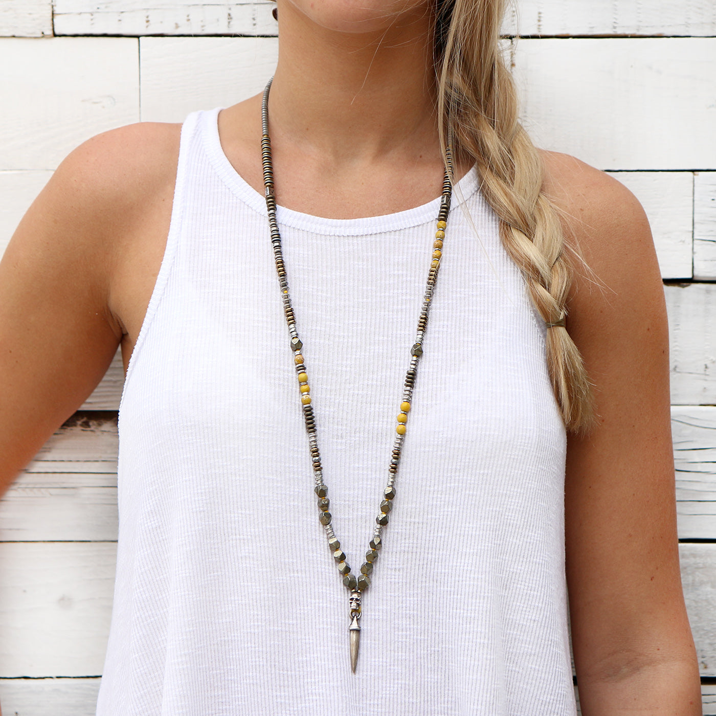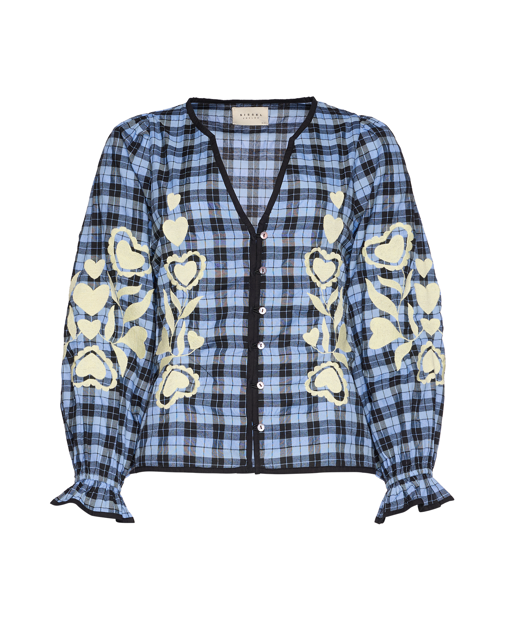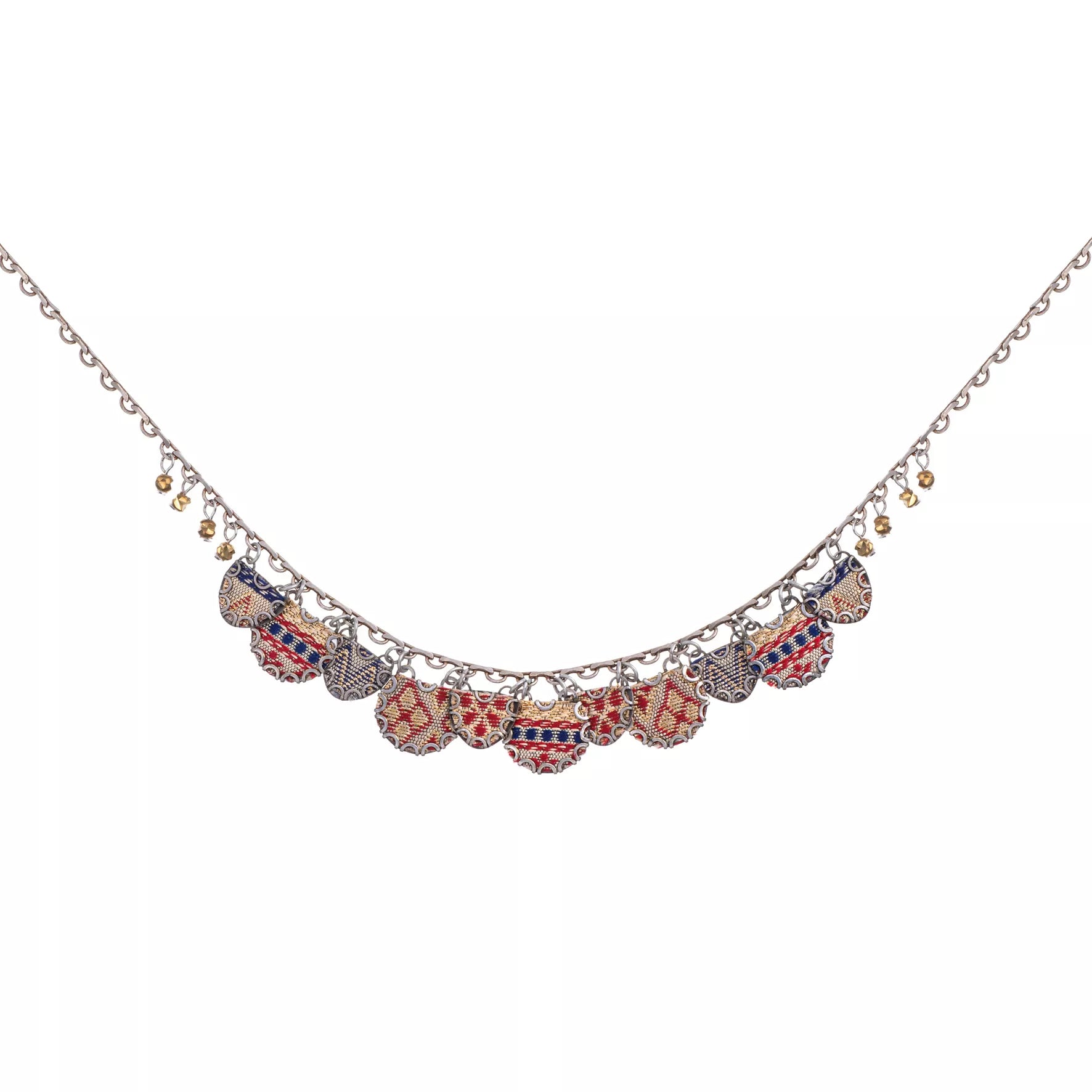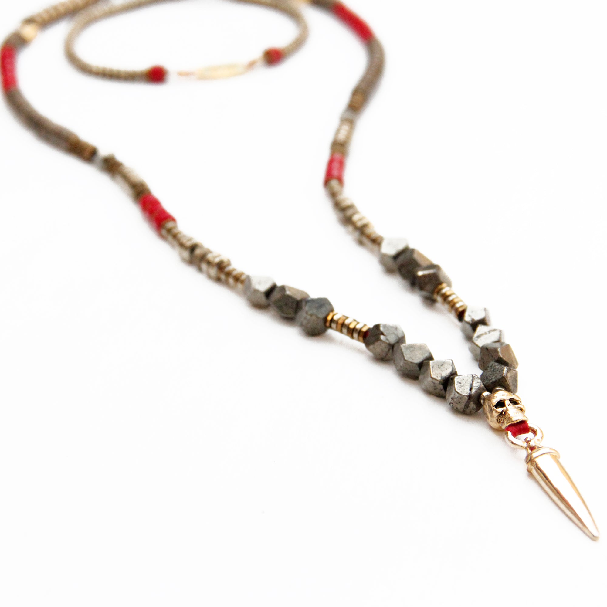 - Trim: Striebånd med tynt tau og treperler, bundet på siden