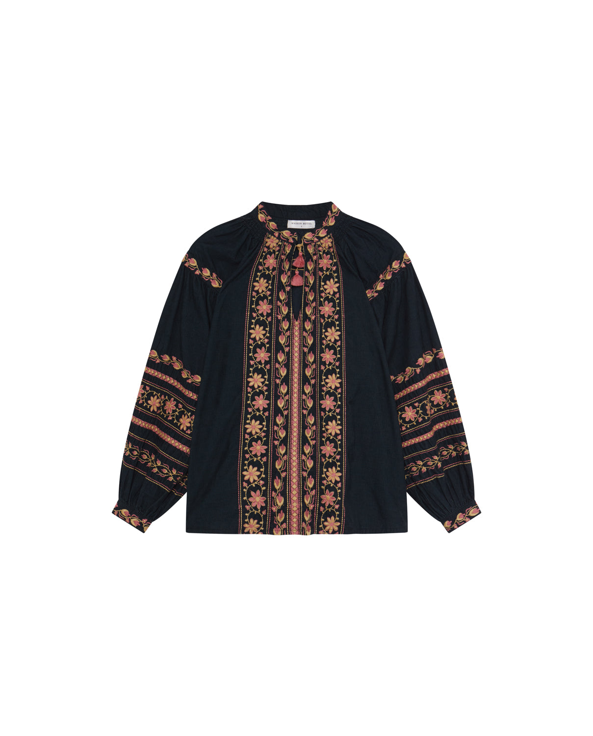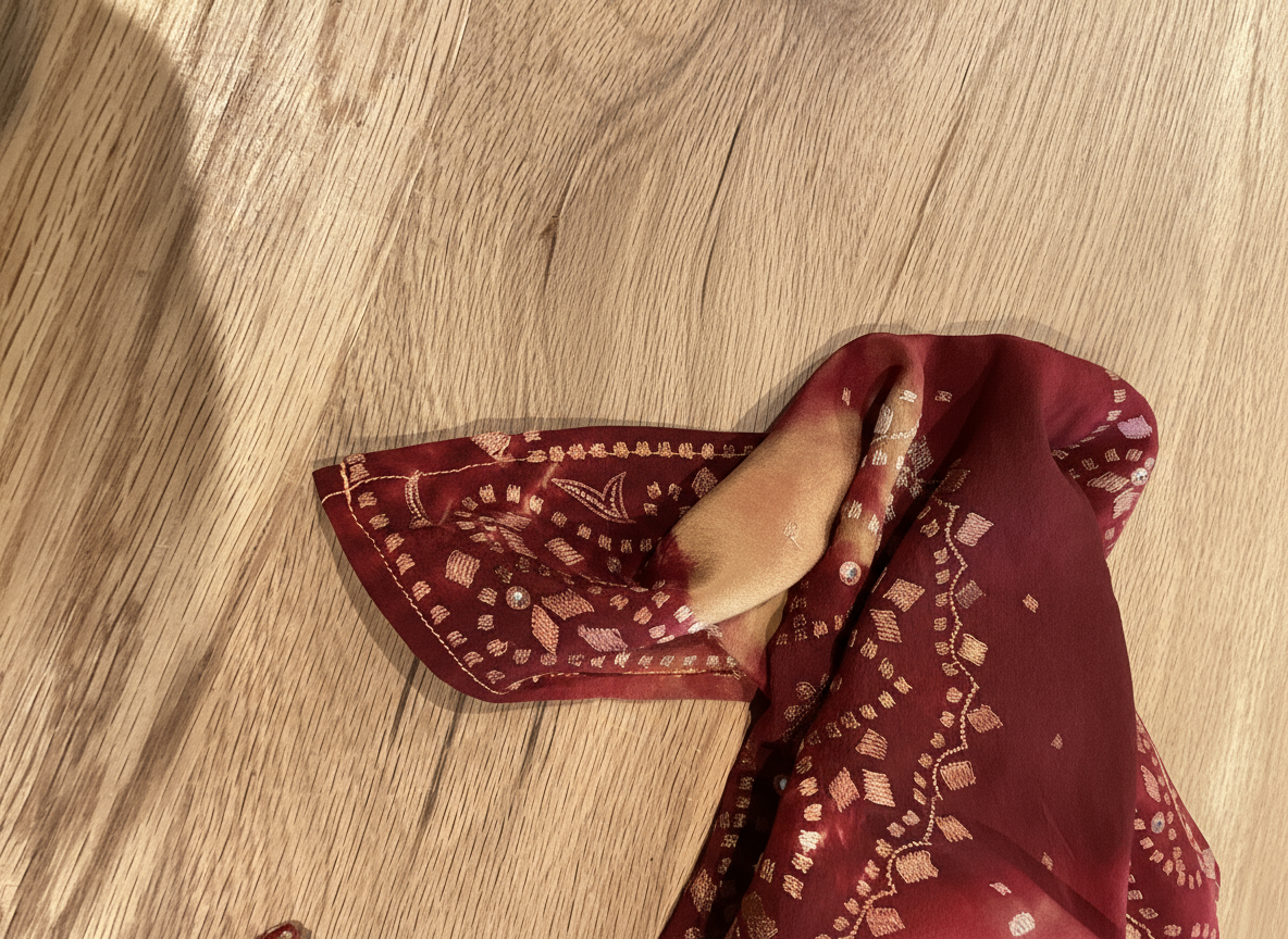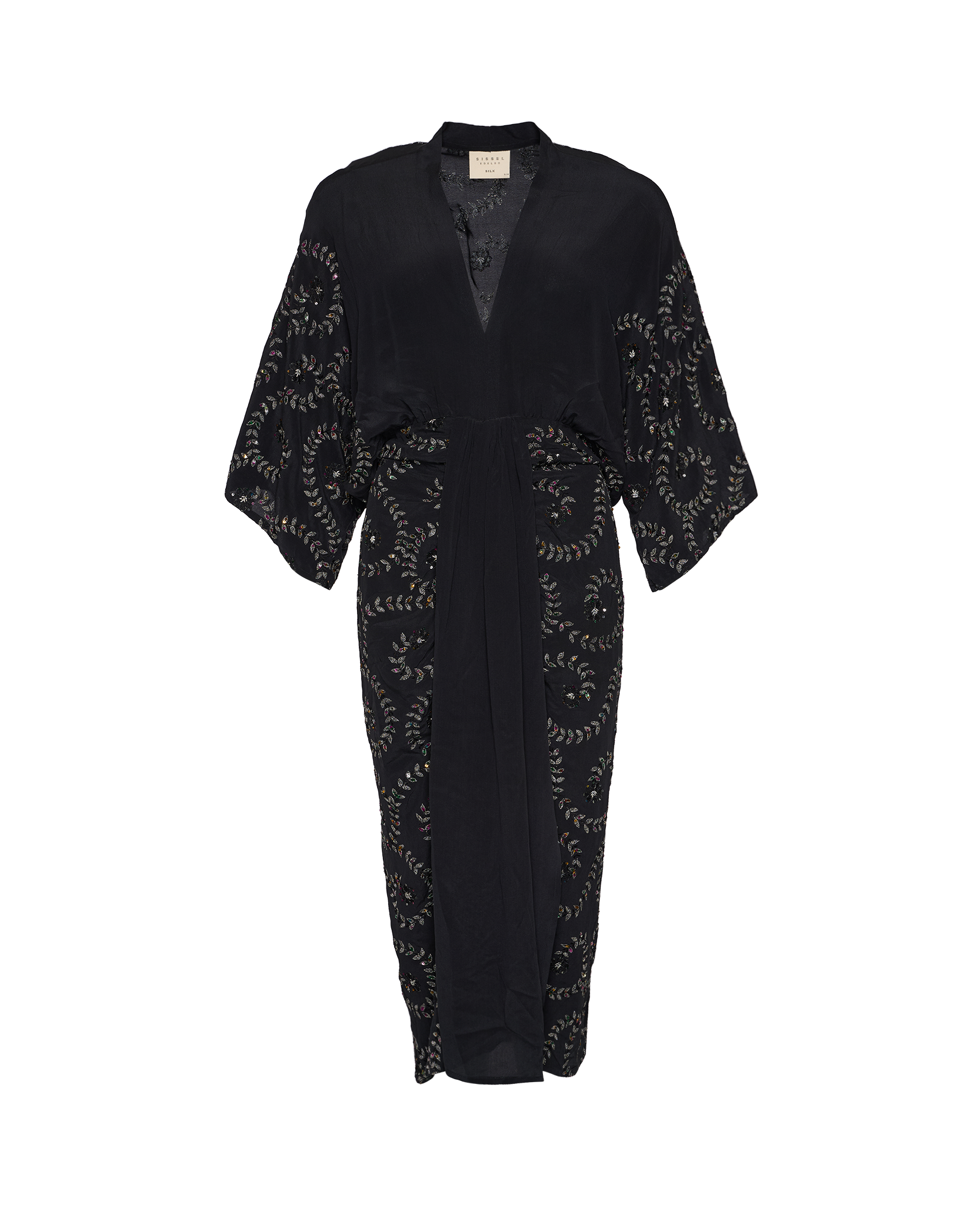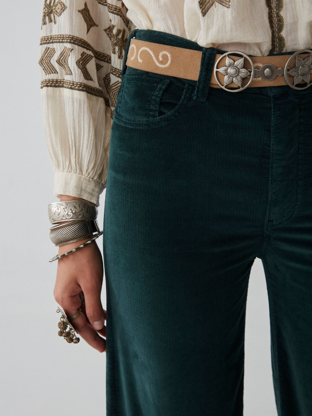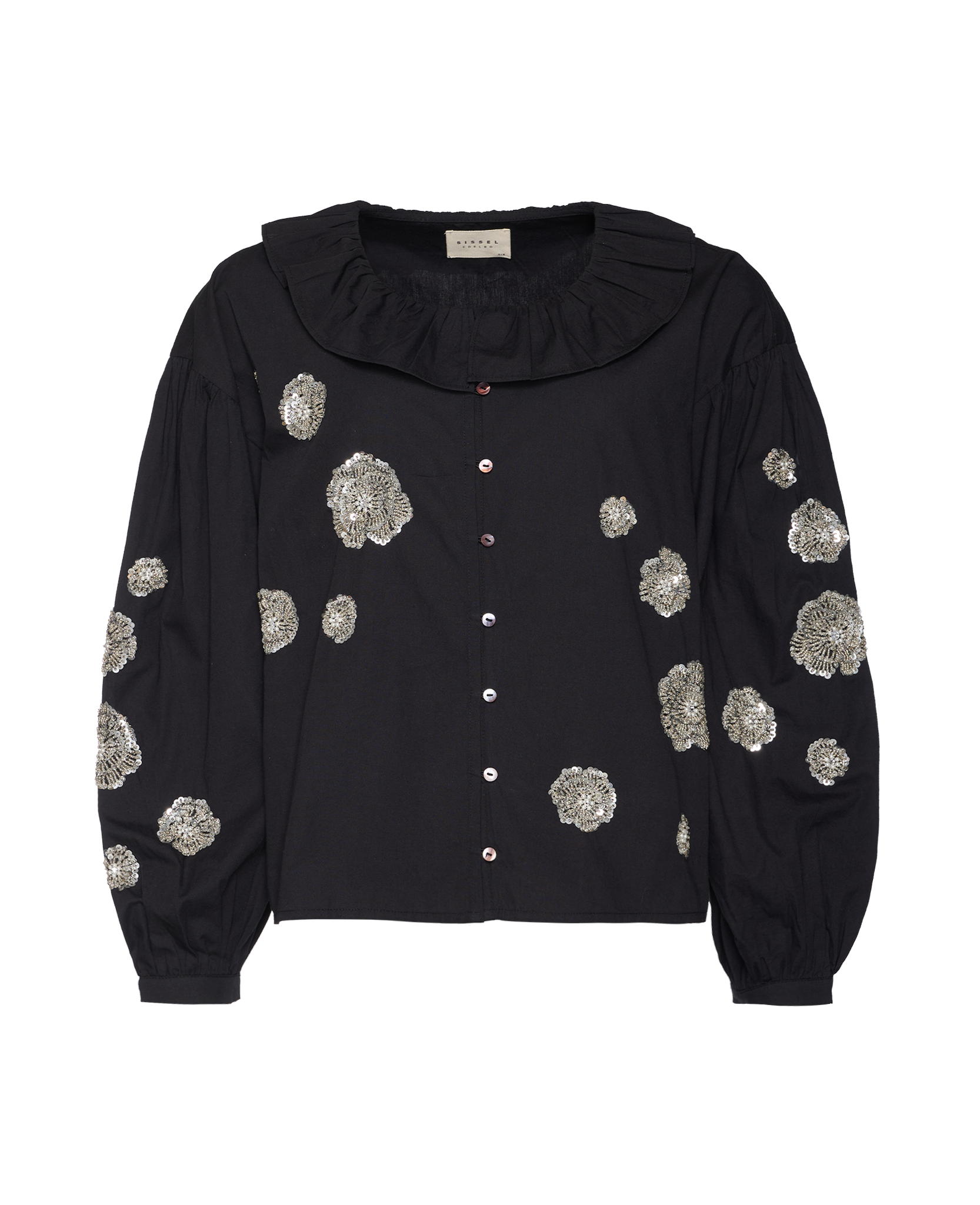 - Trim: Striebånd med tynt tau og treperler, bundet på siden