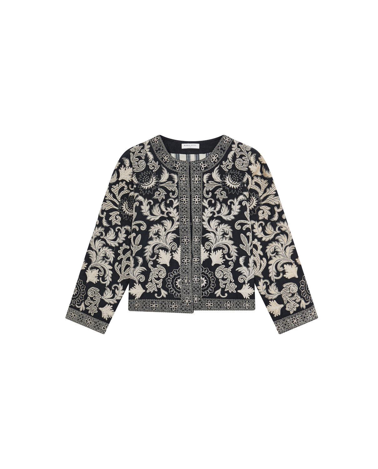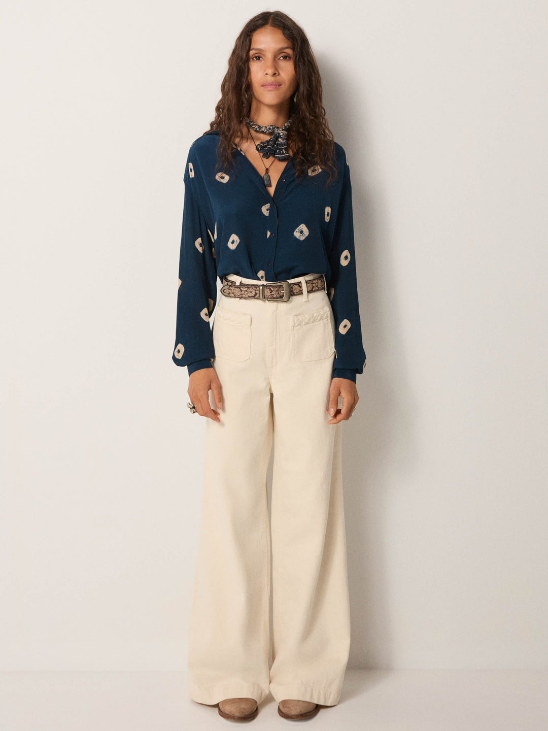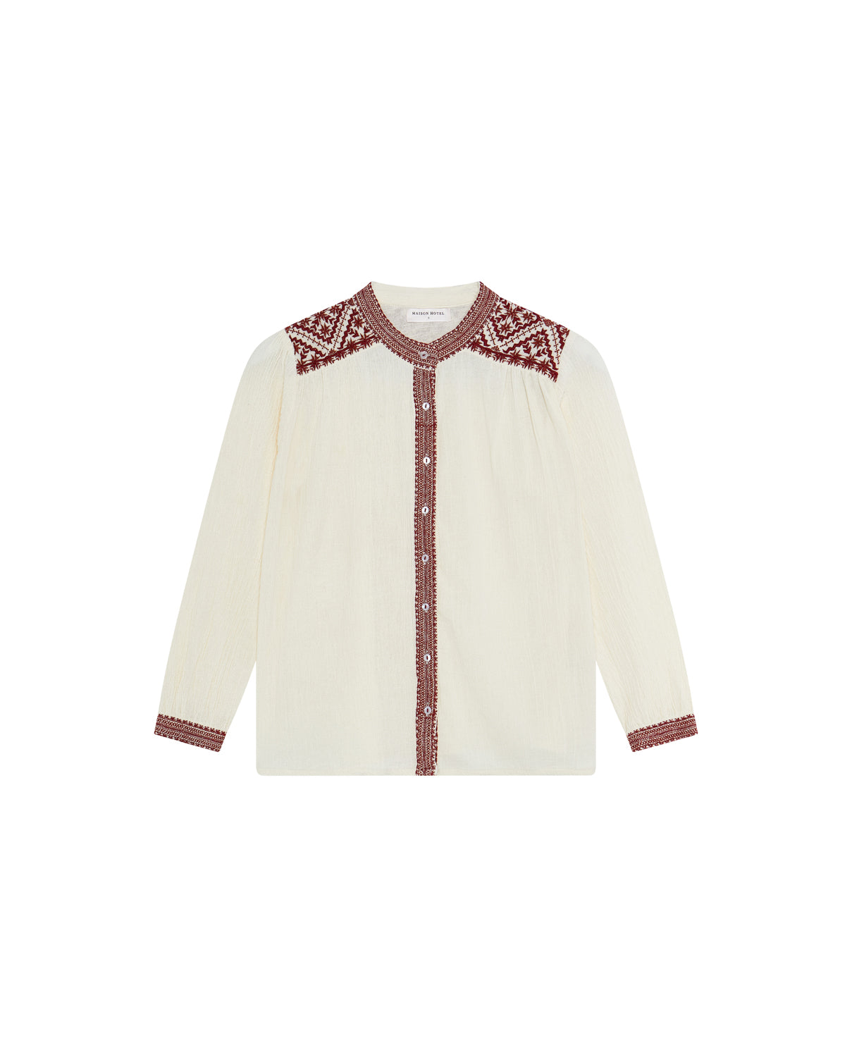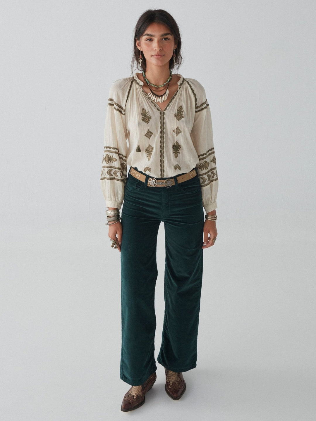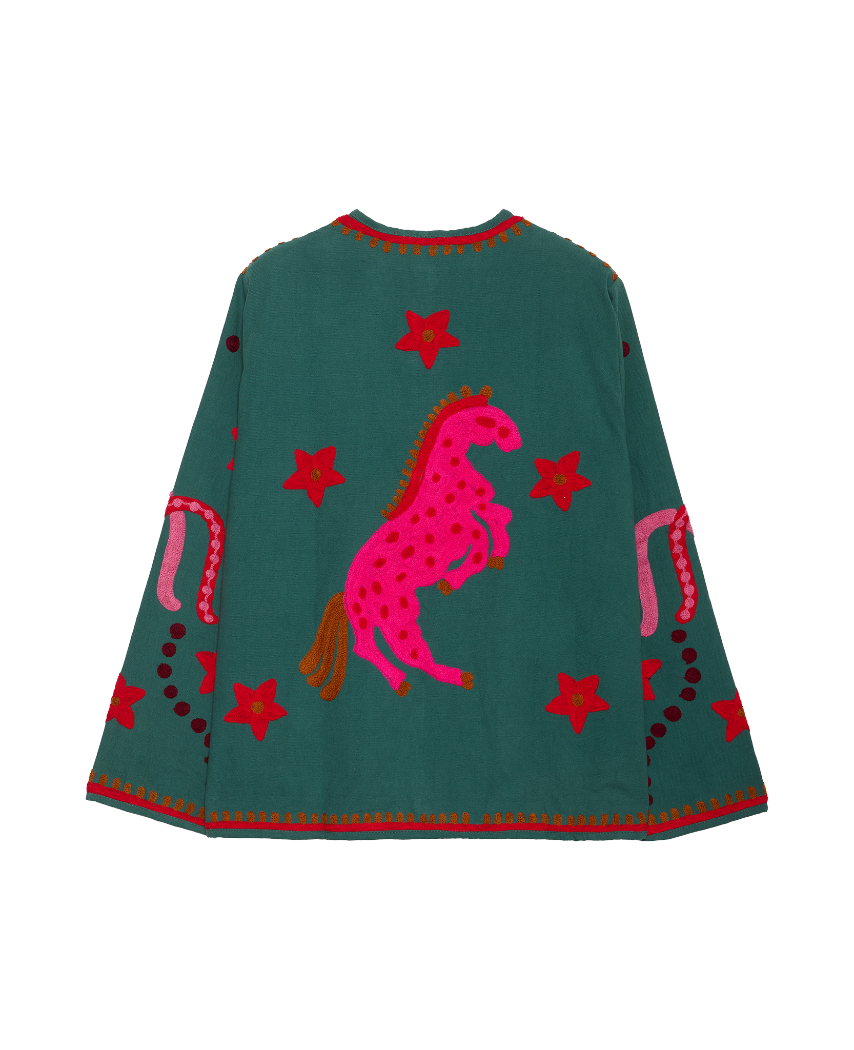 - Trim: Striebånd med tynt tau og treperler, bundet på siden