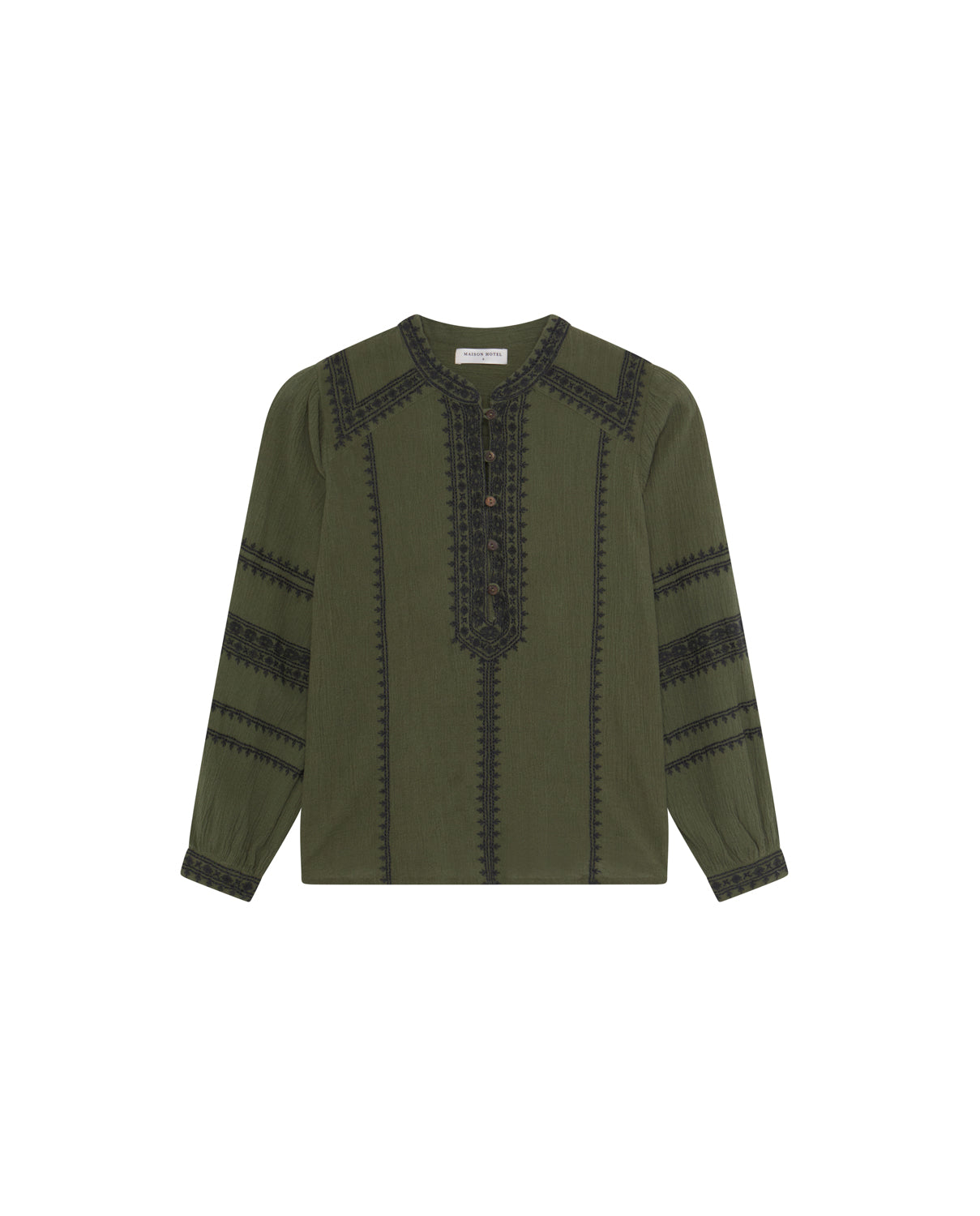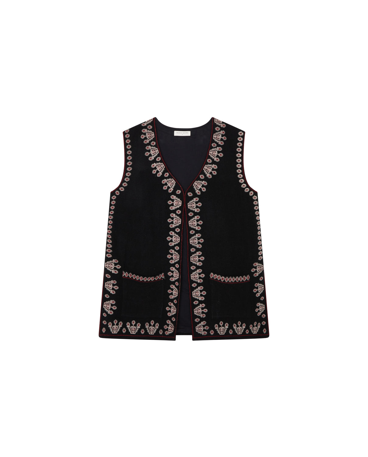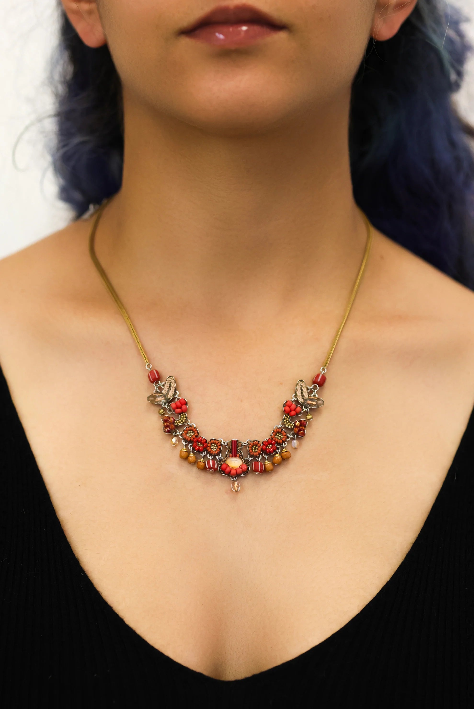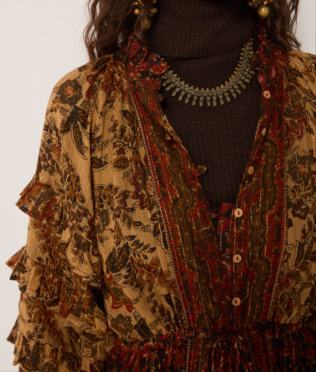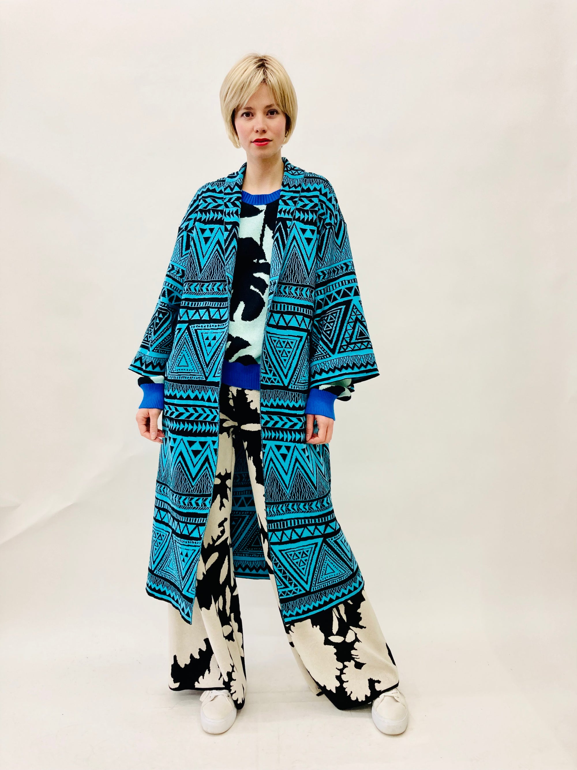 - Trim: Striebånd med tynt tau og treperler, bundet på siden