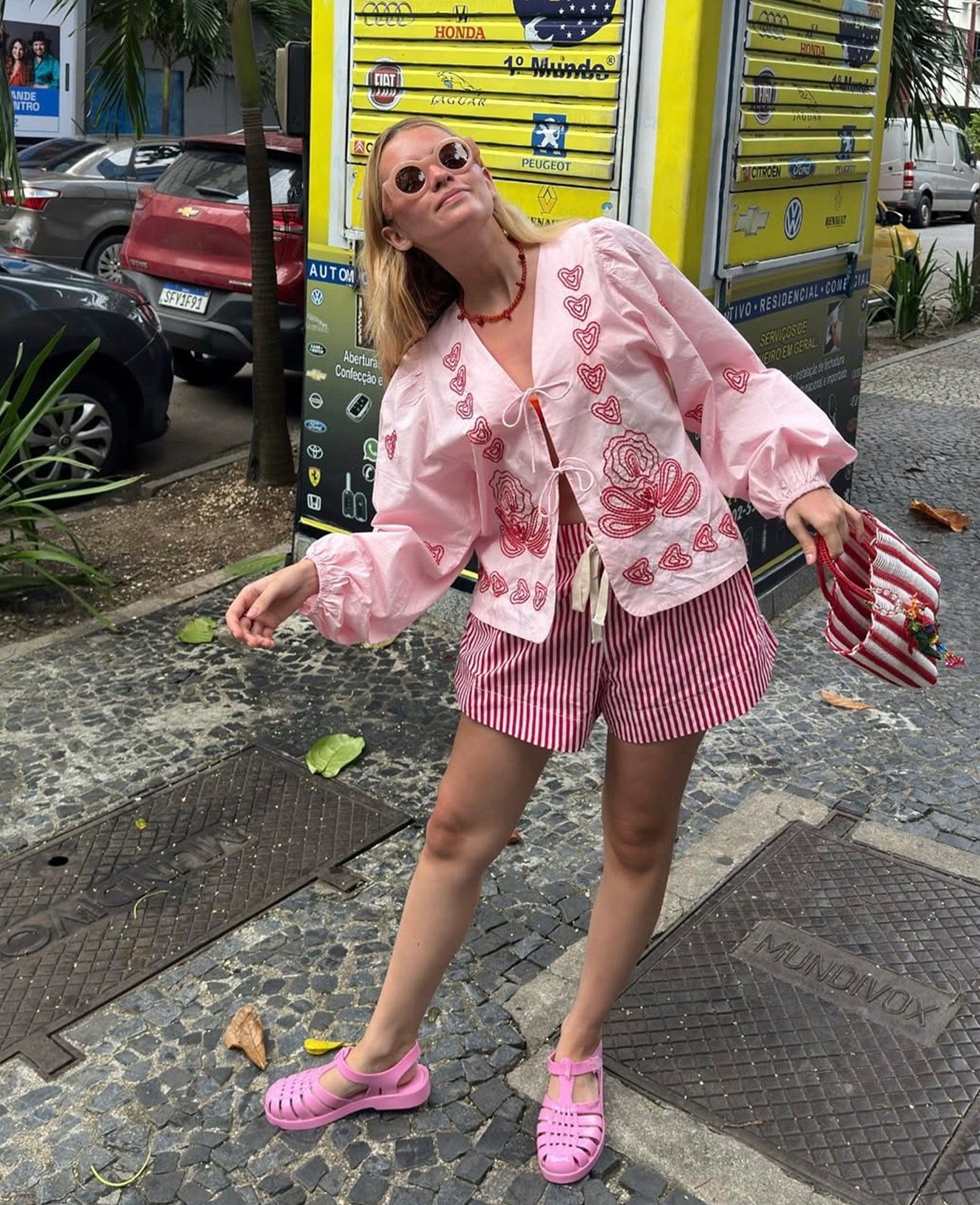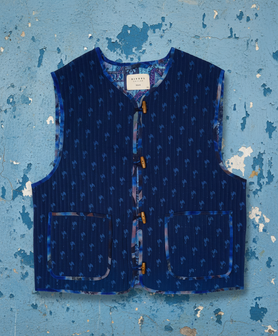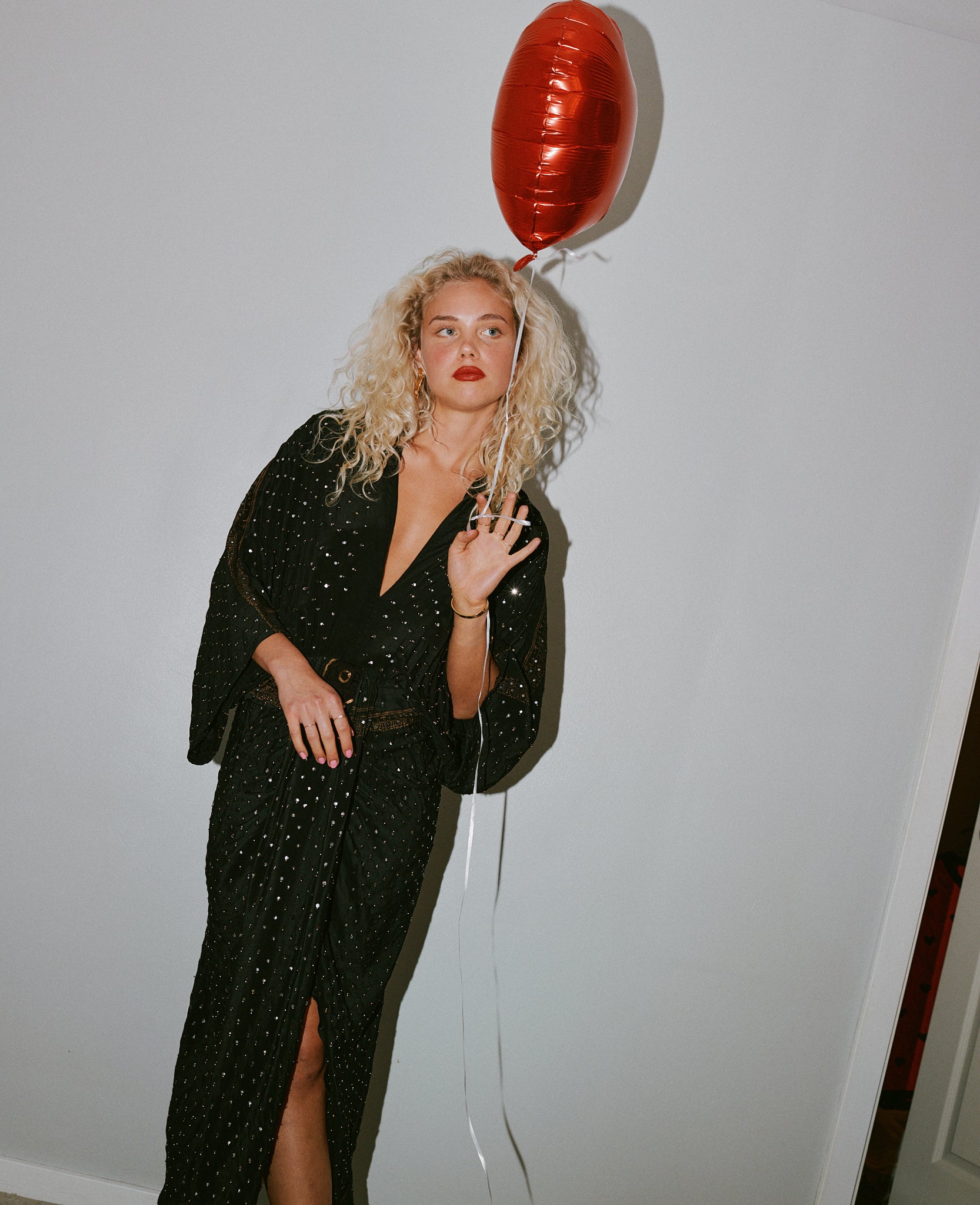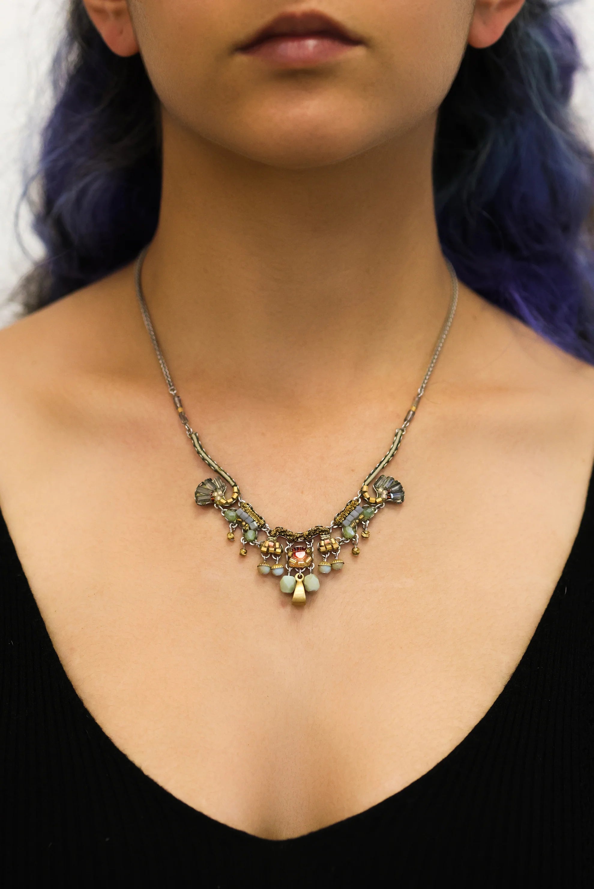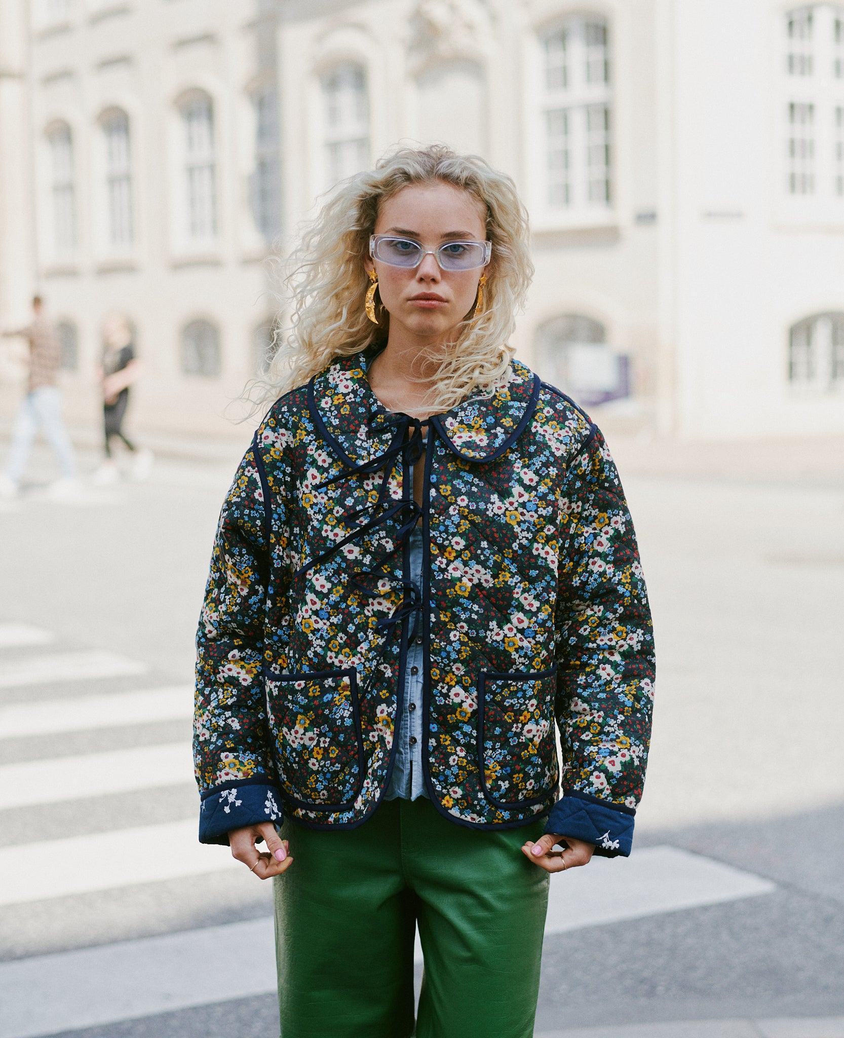 - Trim: Striebånd med tynt tau og treperler, bundet på siden