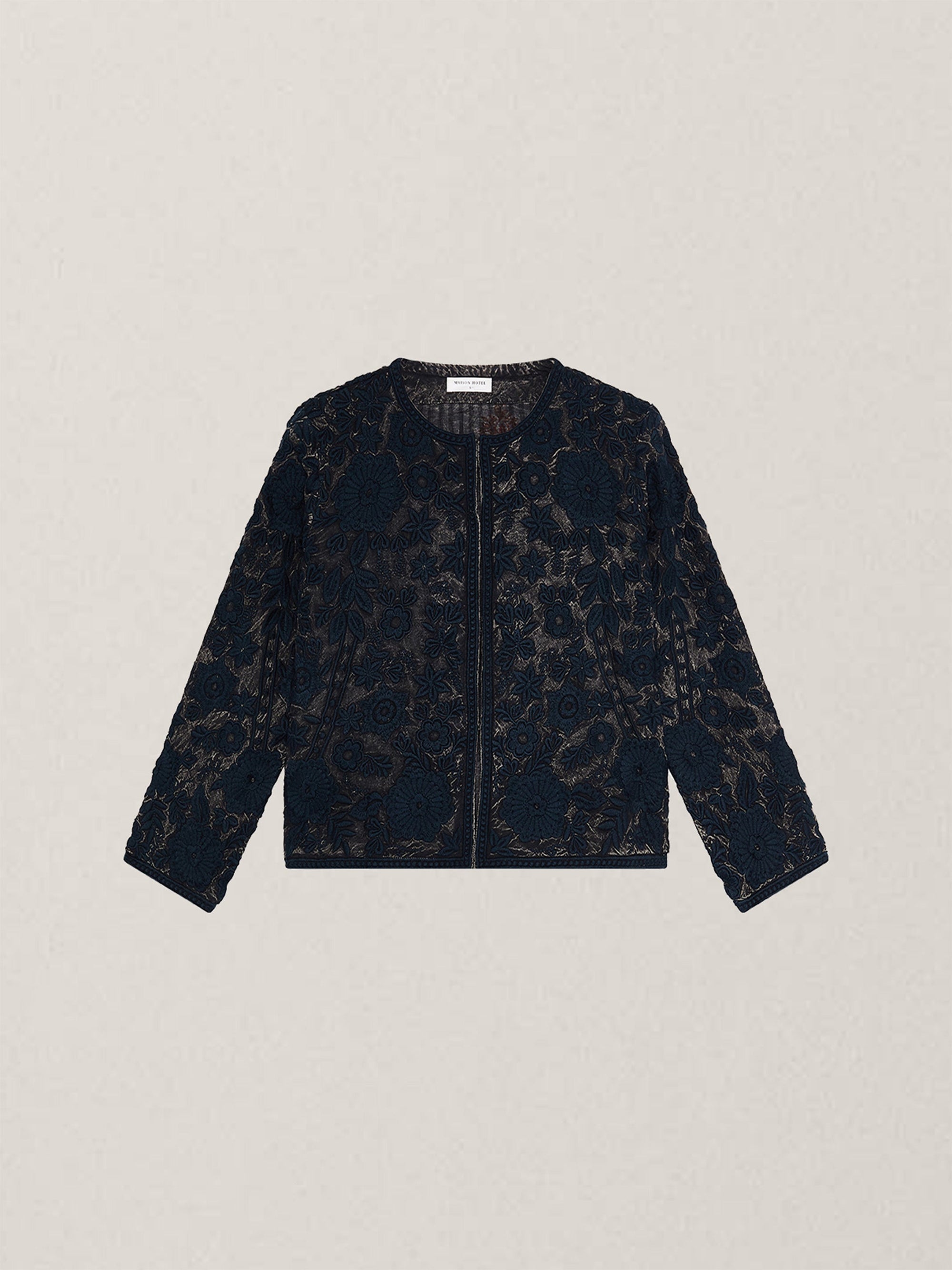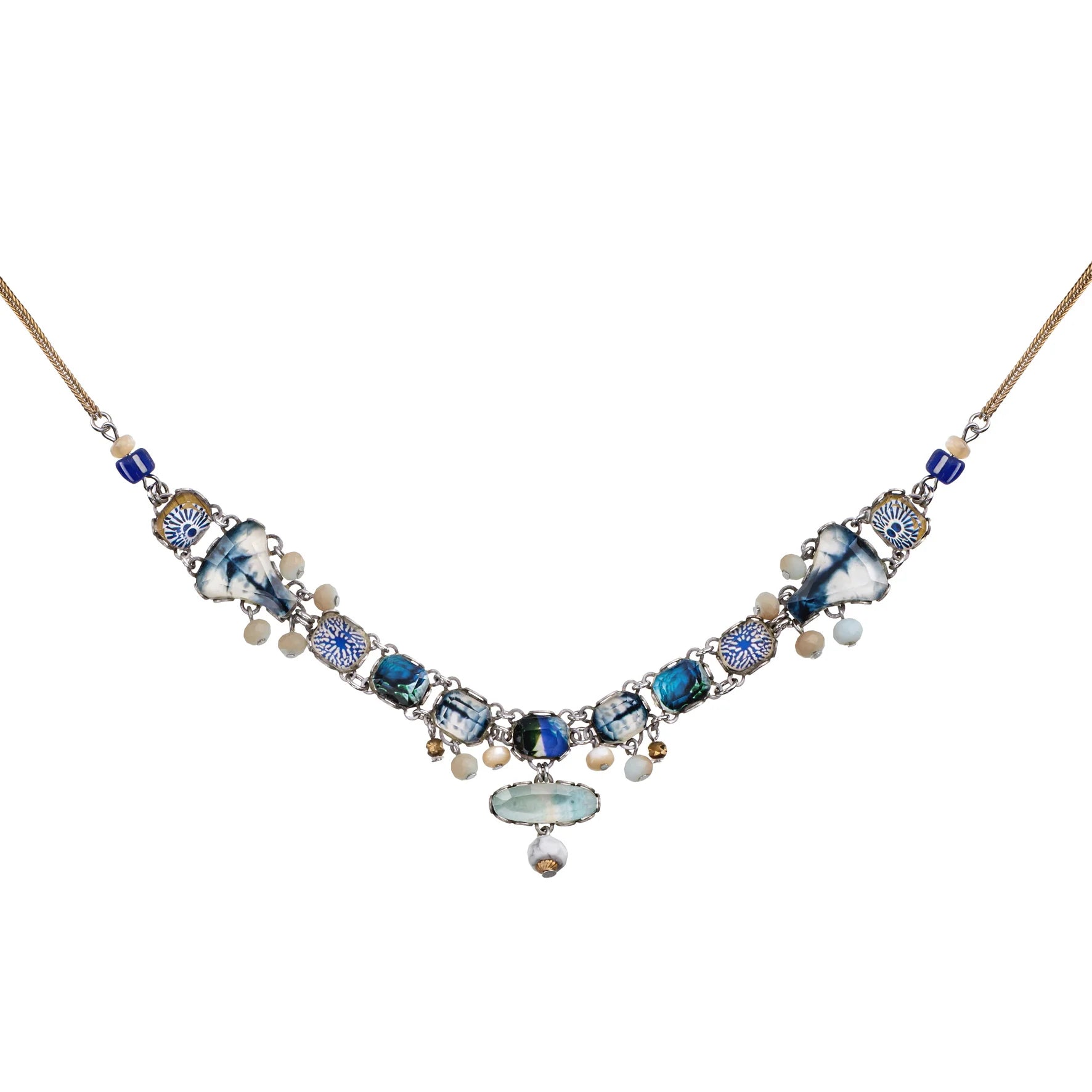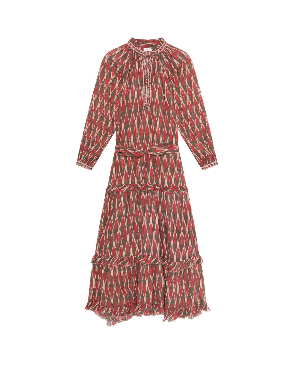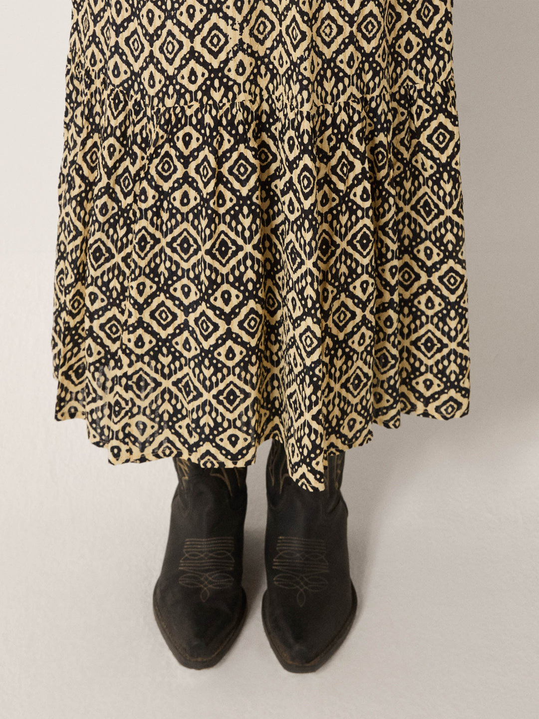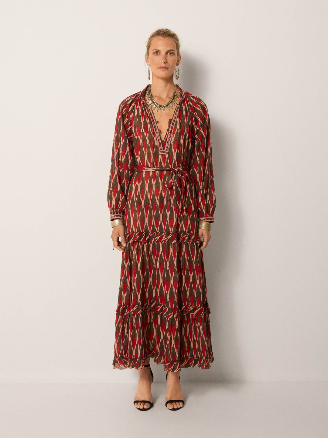 - Trim: Striebånd med tynt tau og treperler, bundet på siden
