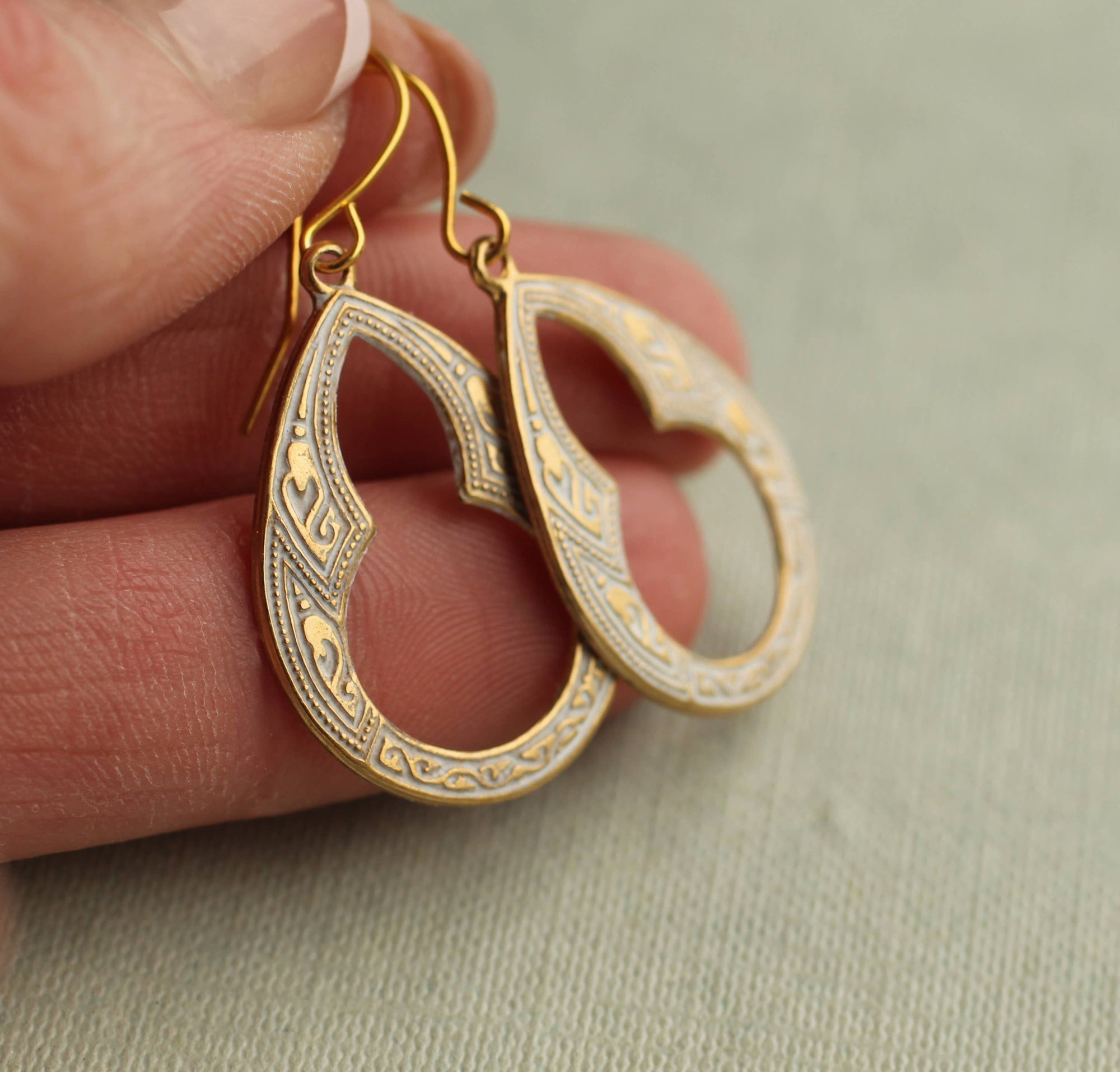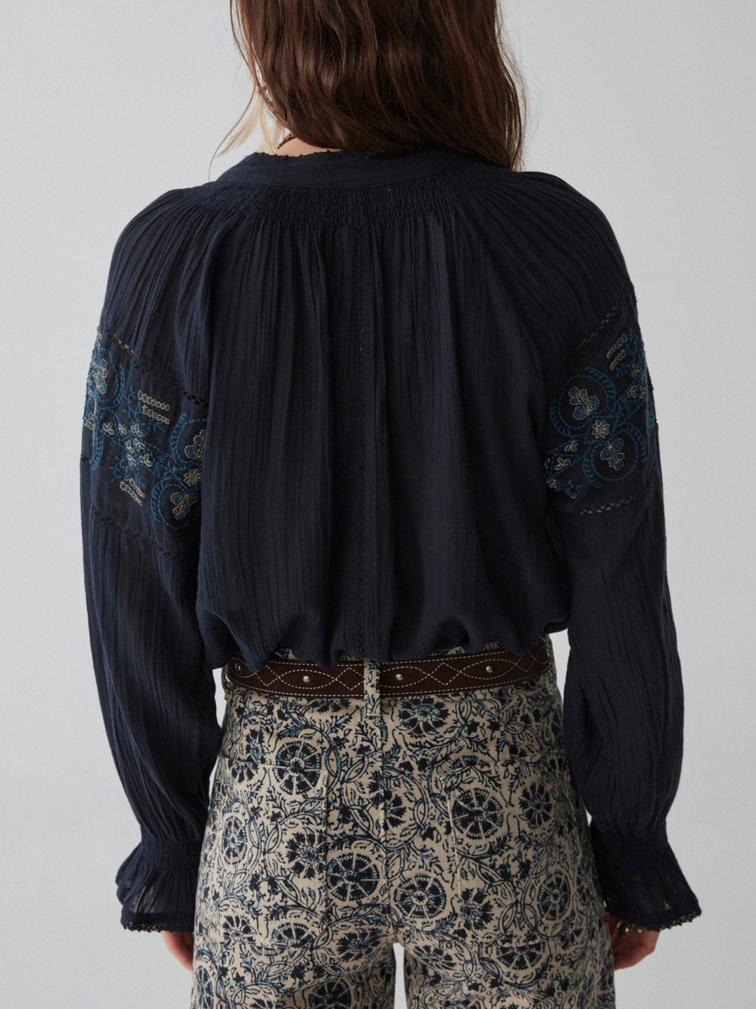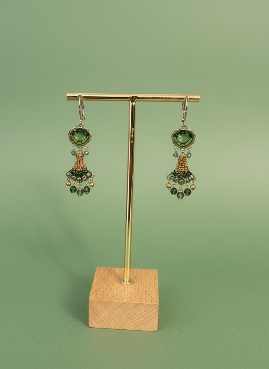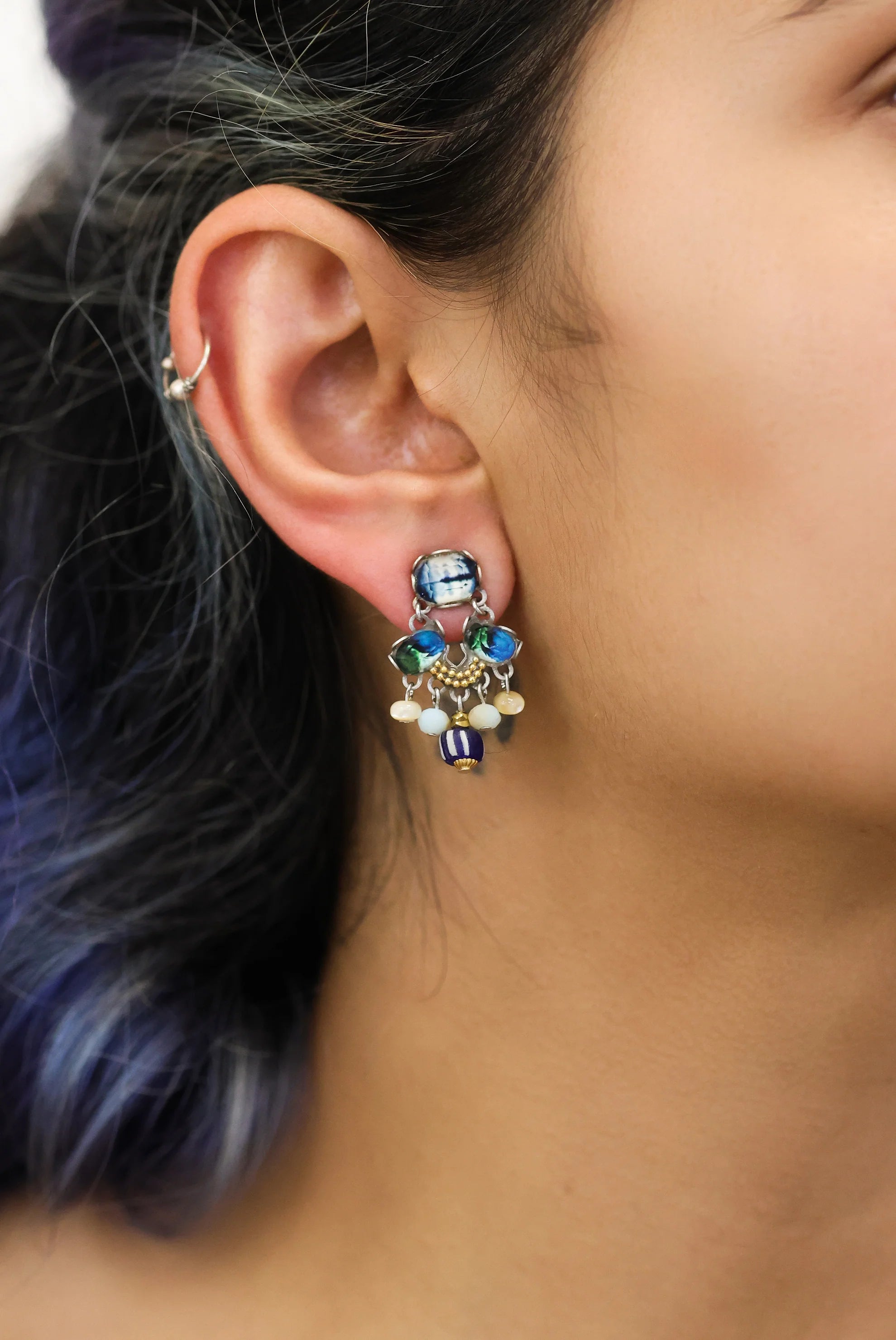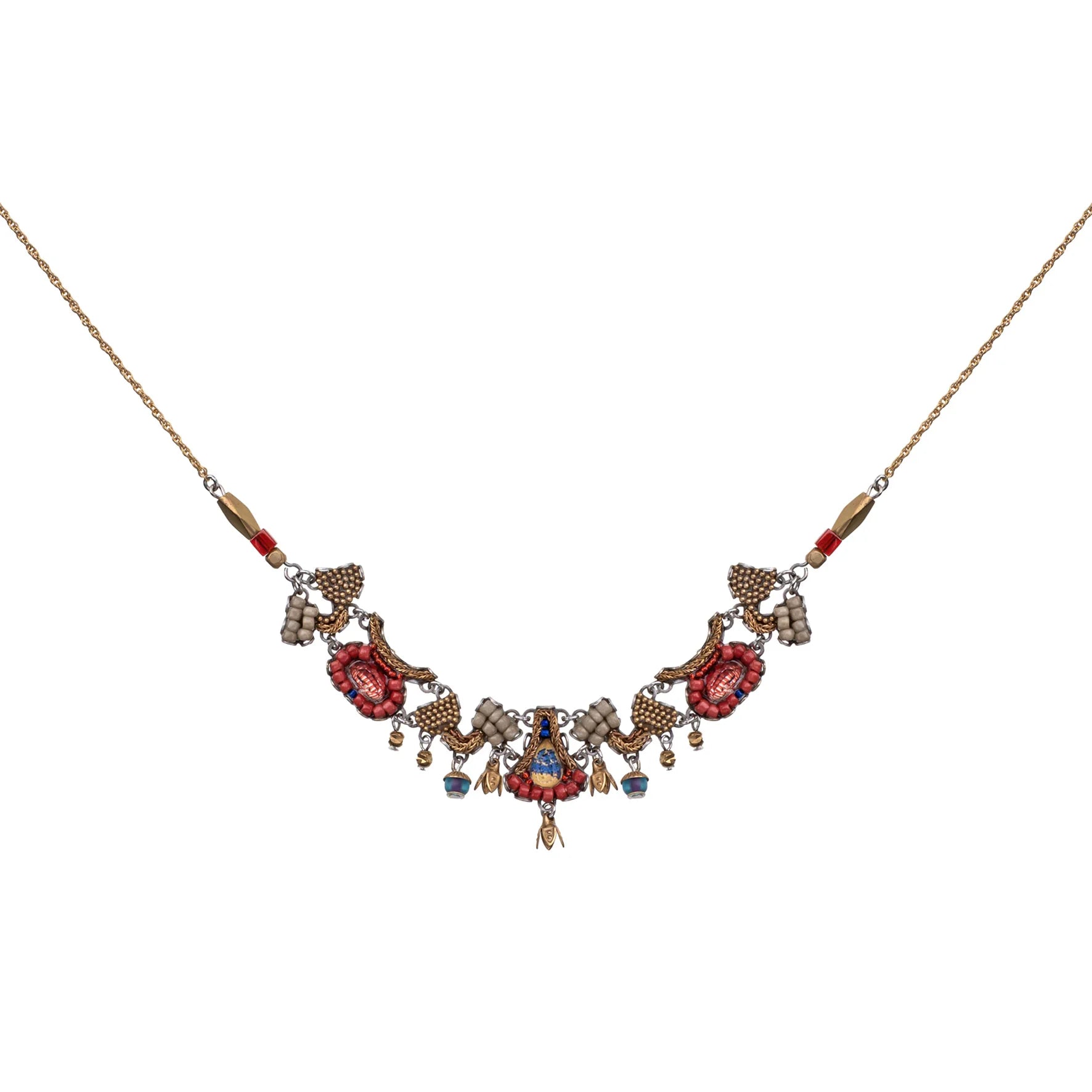 - Trim: Striebånd med tynt tau og treperler, bundet på siden