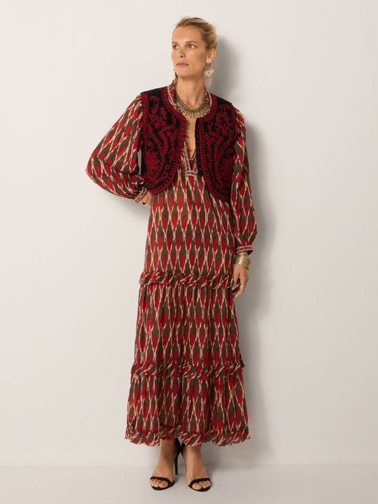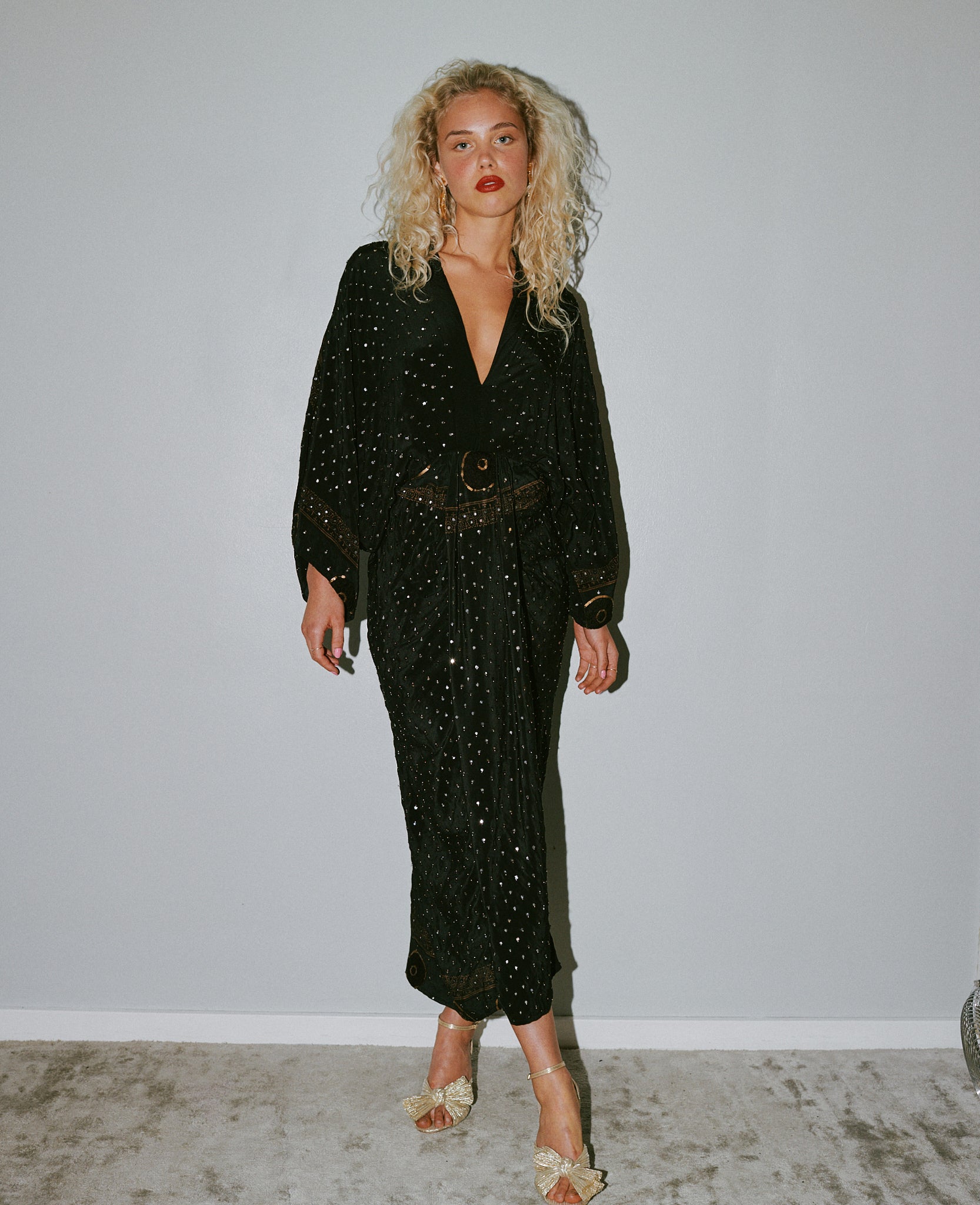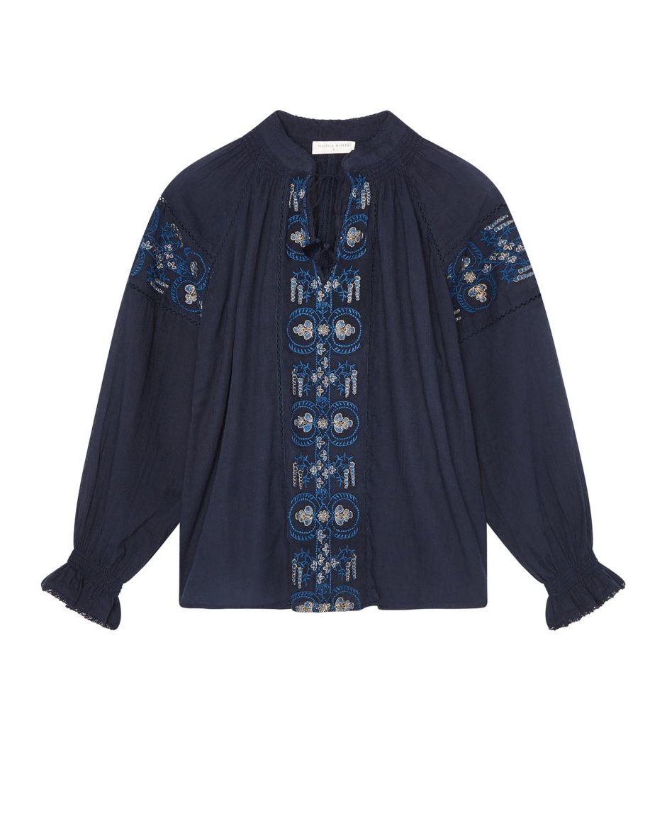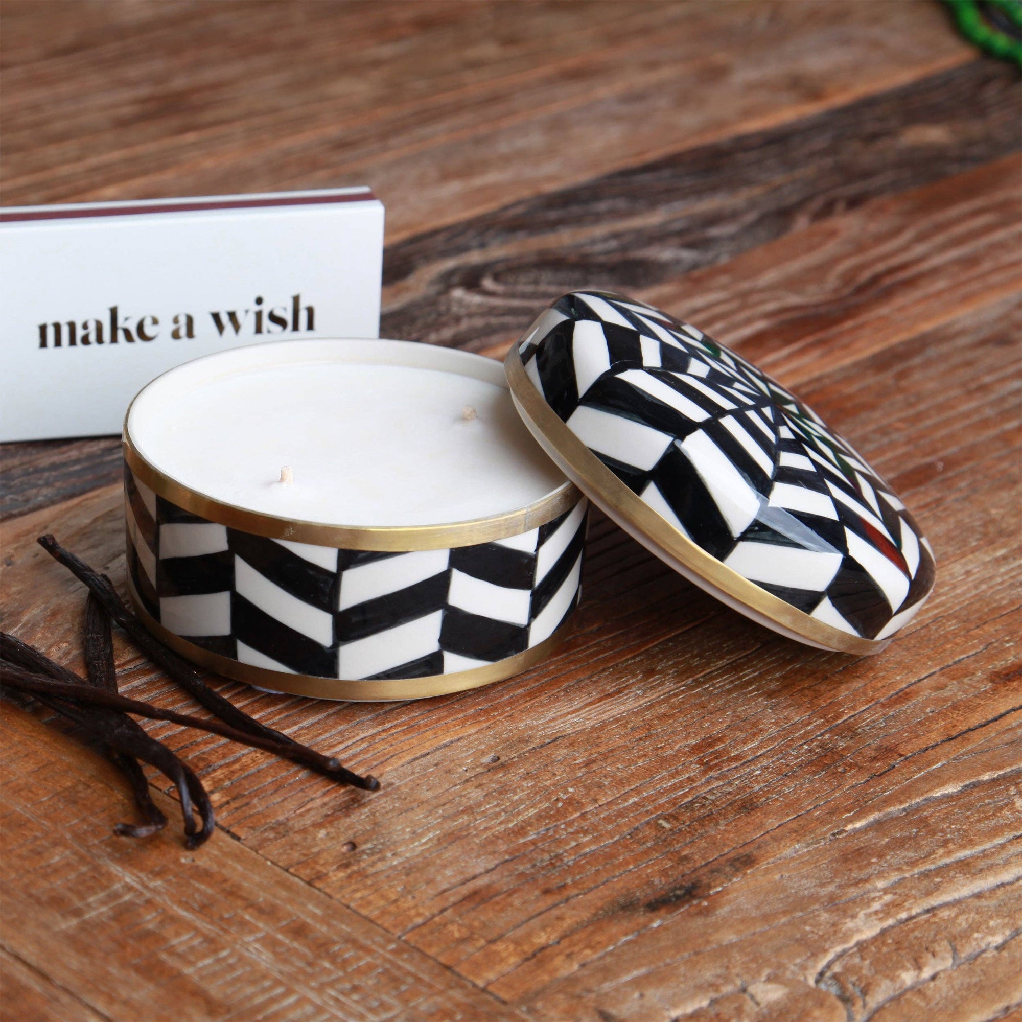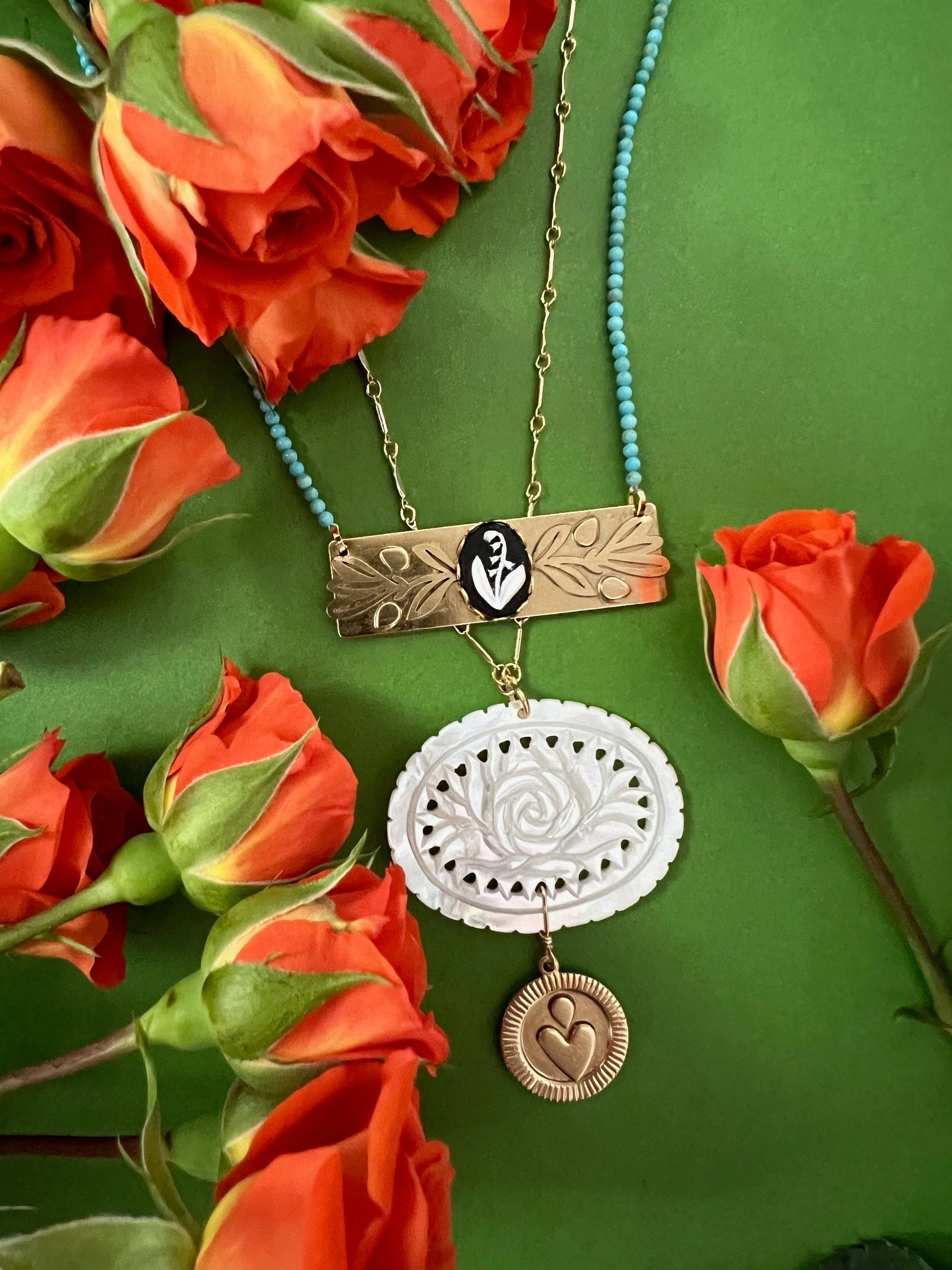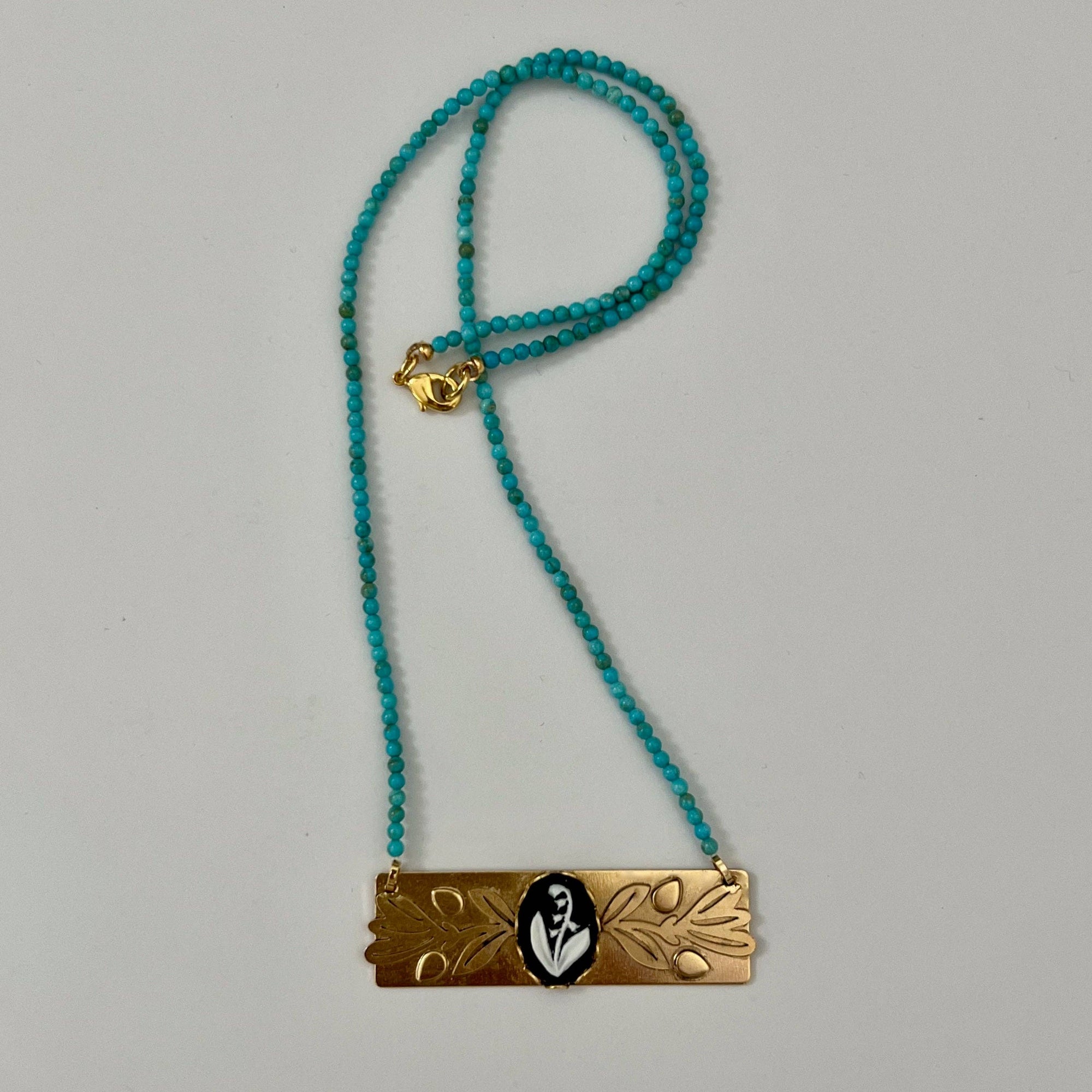 - Trim: Striebånd med tynt tau og treperler, bundet på siden